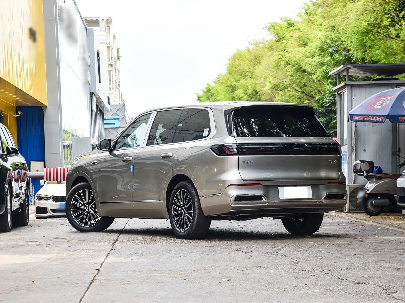 我们首先来看新车的外观设计方面,新车前脸造型与问界M9的造型很相似,并且前脸还采用多颗微型LED组成的贯穿式星汉涟漪灯带,运用双层微孔镭雕技术实现银河波光流动的视觉效果。ADB矩阵大灯与两侧导流槽形成「玉带环腰」设计,配合1999mm宽体车身,既降低视觉威严感又强化空气动力学性能。尤其是天屿蓝/逐光银等六种自然灵感车色中,松间绿凭借哑光质感成为商务与家用场景的平衡之选。