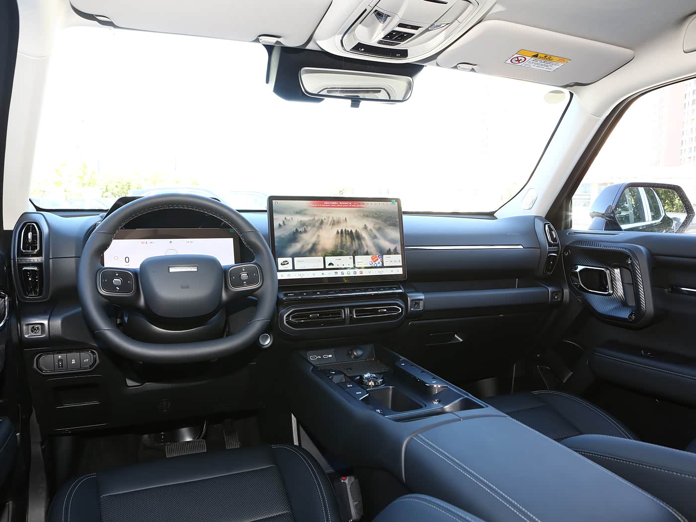进入车内,内饰空间是哈弗大狗PLUS实现可城可野理念的核心载体,通过山野会客厅的设计哲学,将硬派功能性与家居舒适性完美融合。中控台采用14.6英寸悬浮式防眩光屏与10.25英寸全液晶仪表的组合,配合新一代Coffee OS 3系统,支持3D模型桌面、越野信息界面等个性化显示方向盘采用双辐D形设计,集成怀挡换挡机构,为中控岛台释放出50W无线快充空间,而保留的物理按键则确保越野场景下的盲操可靠性。座椅采用云柔舒享填充物,配备靠背+坐垫双吸风式三挡通风系统,实测高温环境下可快速降温,配合仿皮材质与记忆电动调节功能,兼顾长途舒适性与越野支撑性。空间布局上,2810mm轴距带来同级领先的腿部空间,后排座椅支持比例放倒,后备厢容积可从常规的483L扩展至1738L,满足户外装备装载需求。