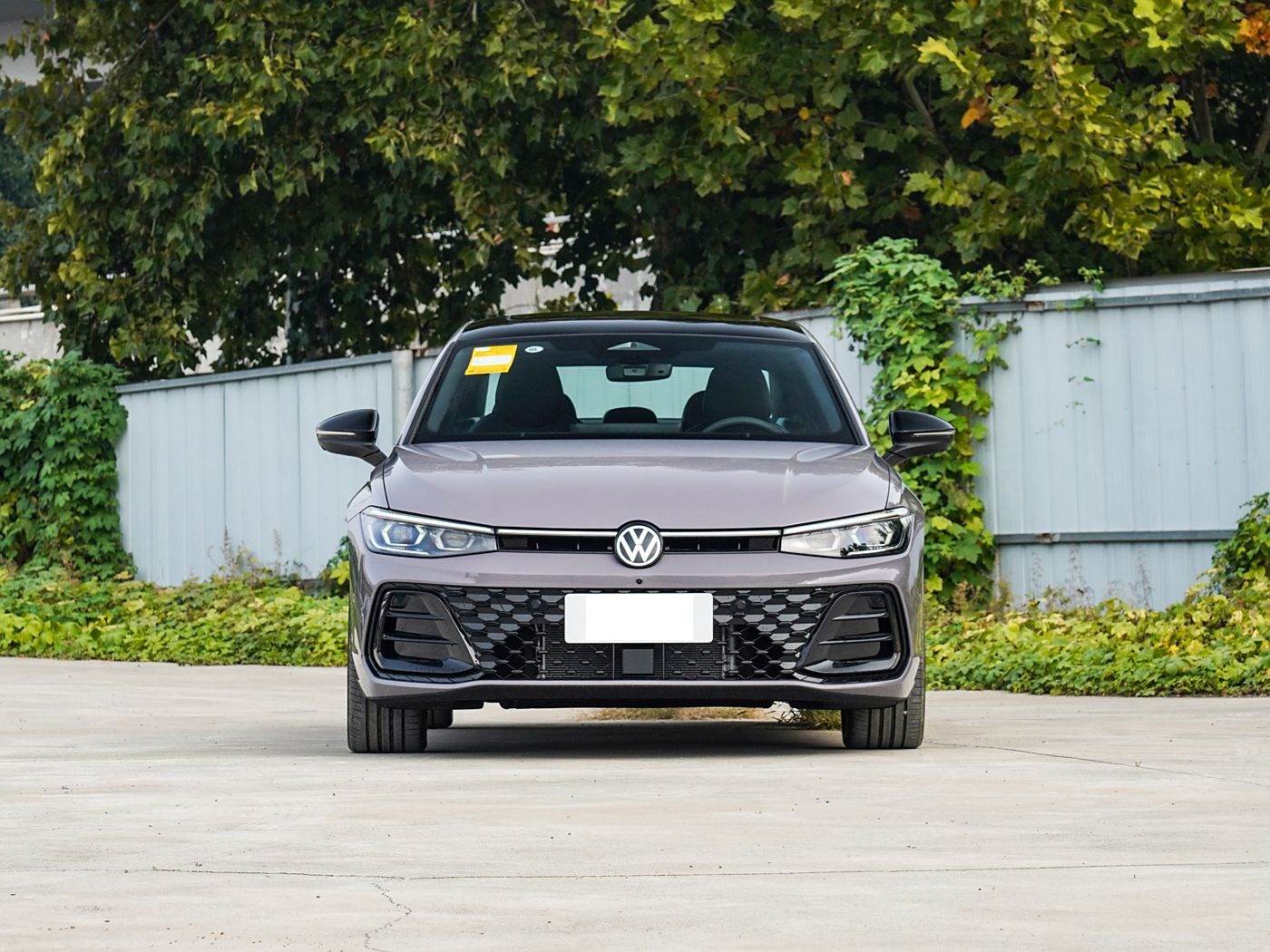 我们首先来看新车的外观设计方面,新车两种前脸其中一款采用横向镀铬格栅与三段式下包围,以沉稳的商务气质满足传统用户需求,而另一款则是通过点阵式熏黑中网与风刃造型导流槽,营造出强烈的运动氛围。全系标配的IQ.Light矩阵大灯由144颗LED灯珠组成,支持自适应远近光与迎宾光毯功能,夜间点亮时如同“天使之翼”投射地面,仪式感十足。前保险杠两侧的垂直导流槽设计,不仅优化了空气动力学,更强化了车头的视觉宽度。