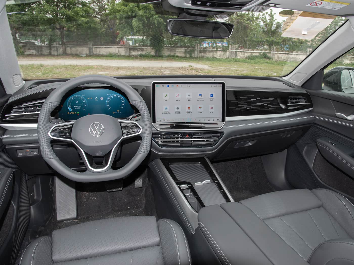再来看车尾部分,贯穿式尾灯内部采用点阵式LED光源,夜间辨识度极高;小鸭尾设计与内凹式牌照框形成层次分明的立体结构。下包围的黑色扩散器与双边共两出排气(装饰件)强化运动属性,而红色反光条则延续了大众家族的经典元素。整体尾部设计既保留了德系车的稳重基调,又通过细节处理迎合年轻审美。
