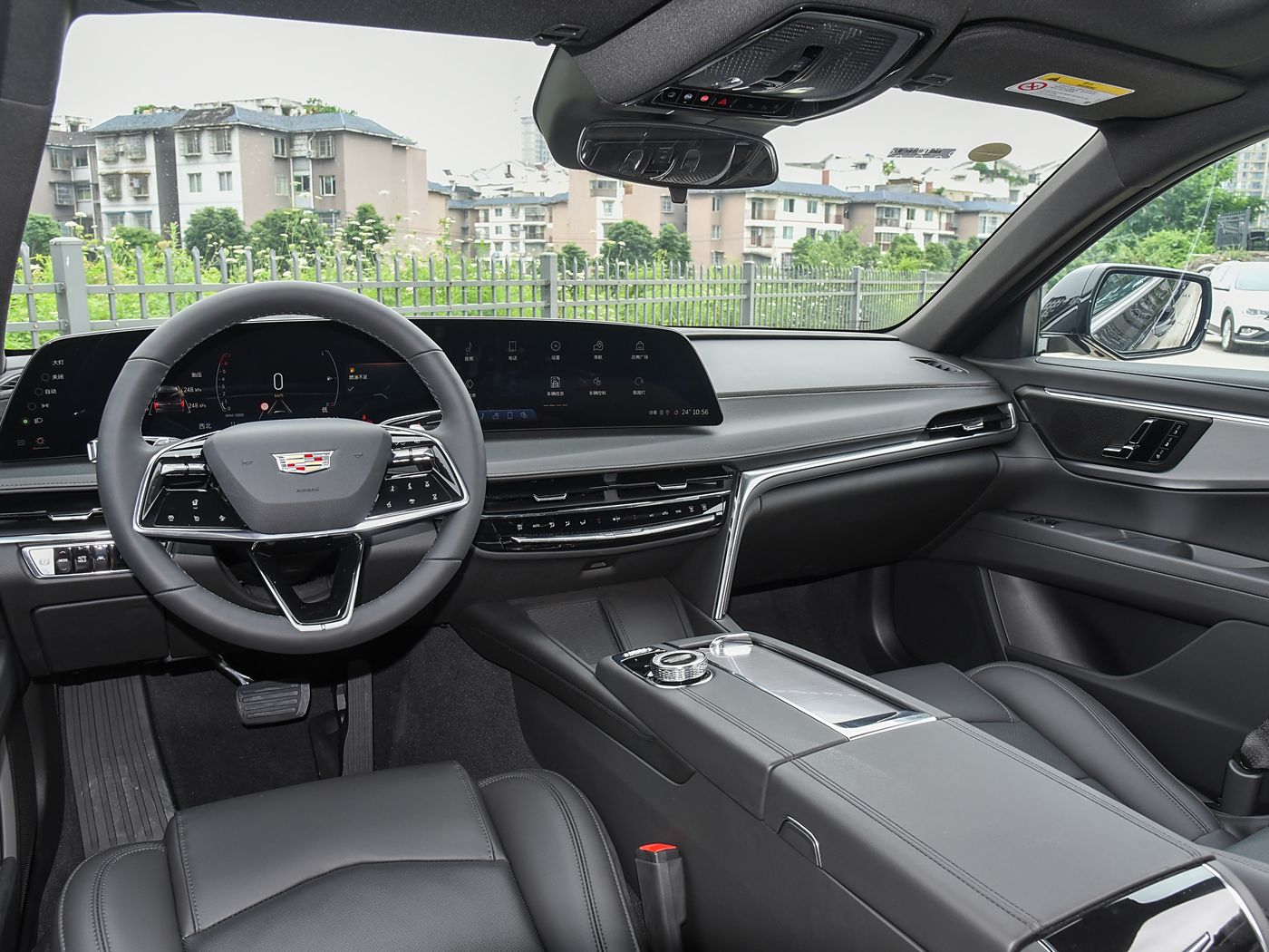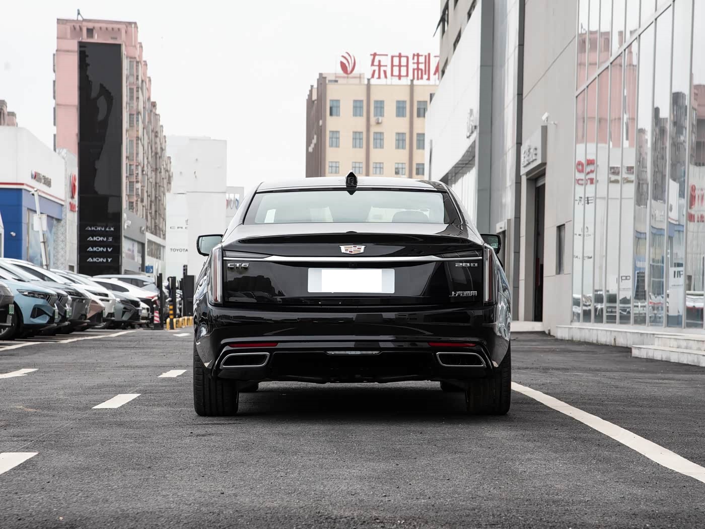 再来看车尾部分,车尾设计延续凯迪拉克标志性的垂直美学,全新飞翼式LED尾灯采用368颗LED光源,支持动态流水转向效果,夜间辨识度极佳。后备箱盖微微上翘的小鸭尾设计,配合双边双出镀铬排气(GS版为菱形四出造型),形成层次分明的立体轮廓。尾灯组内部融入V型光带元素,与车头V盾格栅形成视觉呼应,点亮后如同璀璨钻石阵列。后包围采用空气动力学扩散器设计,配合隐藏式后雨刷,使车尾线条更加简洁利落。