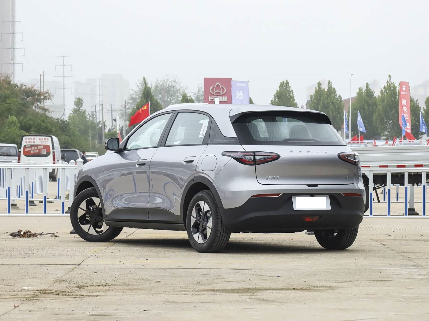 再来看车身侧面部分,4135mm车长配合2650mm轴距,实现同级罕见的61.7%轴长比,后排腿部空间达890mm。侧裙新增星星元素装饰板,16英寸四叶草轮毂(可选装17英寸运动款)降低簧下质量,提升过弯响应速度。车顶采用双色悬浮设计,结合饱满的车门腰线以及半隐藏式的车门把手,整体厚重感得到了提升,而且新车还拥有着70L前备箱容积可容纳20寸登机箱,实用性超越同竞品车型。