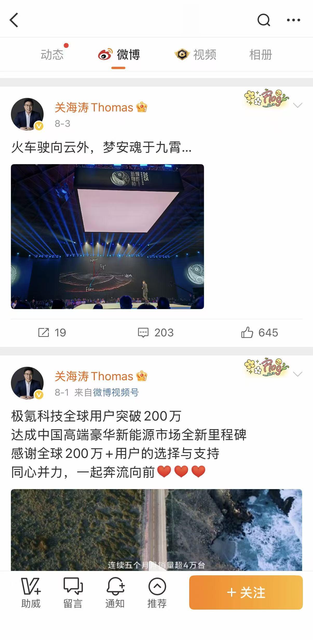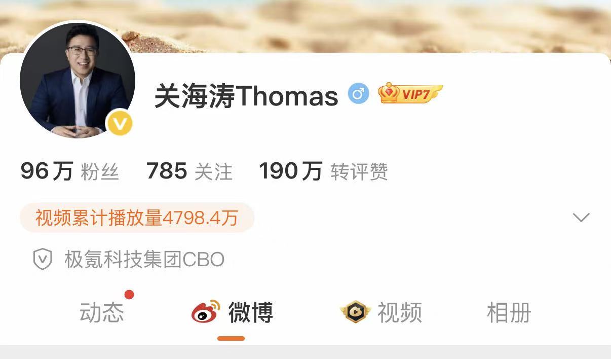 据汽车维基,极氪科技集团CBO关海涛已于近日离职,不再担任公司任何职务。三言注意到,关海涛微博名从“极氪关海涛”已改为“关海涛Thomas”,删除了“极氪”二字。不过目前其微博认证仍是“极氪科技集团CBO”。
