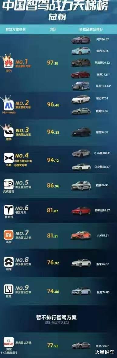 进入2025年,中国智能辅助驾驶领域的竞争格局日益清晰,多家企业在技术路线、商业化落地和用户体验上展现出不同的优势和特点。近期2025中国智能辅助驾驶天梯榜正式发布,从整体格局来看,中国的智能辅助驾驶领域已形成了多元化的竞争态势,华为、小鹏、Momenta、理想、元戎启行被视为“智能辅助驾驶五大天王”,构成了行业的第一阵营。而特斯拉、小米、蔚来、极氪则组成“智能辅助驾驶四小龙”,位居第二梯队。接下来我们就来看看各大车企间的智驾表现。