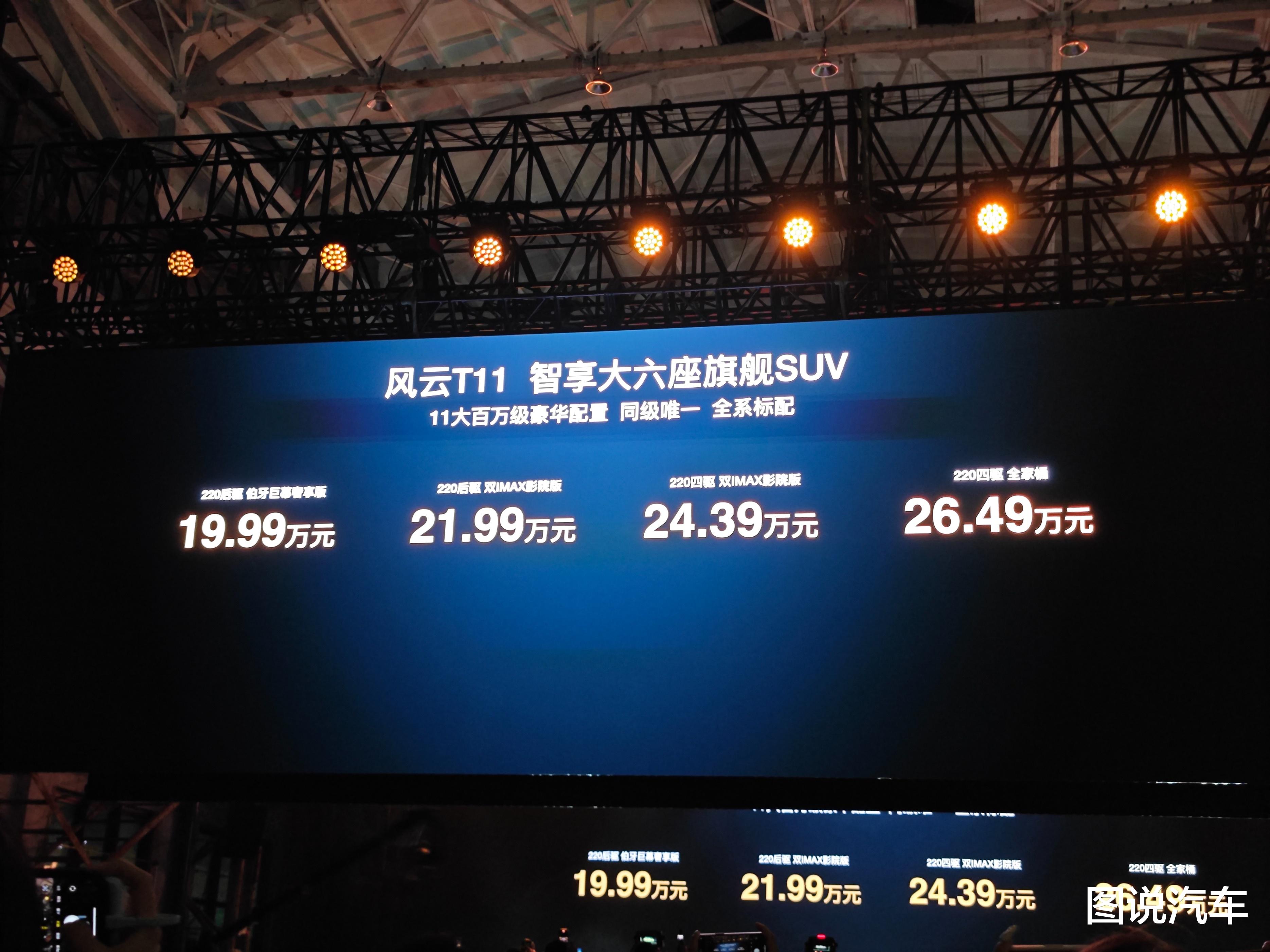 10月13日,风云T11正式公布了预售价格,区间19.99万—26.49万,风云也在24小时后发布了自己的锁单数据,17566台。