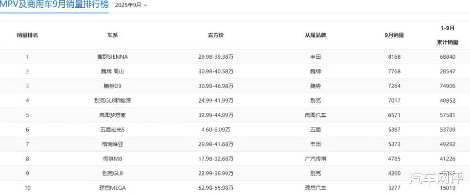 9月MPV市场格局迎来剧烈震荡,TOP 10排名颠覆过往认知,曾经的标杆车型纷纷移位,黑马车型强势突围,让网友直呼“没想到”。