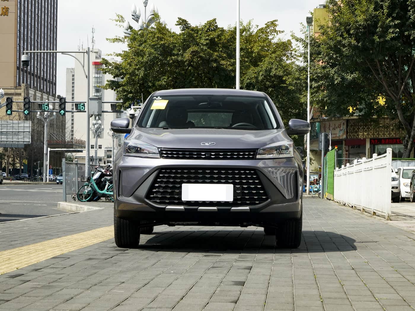 我们首先来看新车的外观设计方面,炫界 Pro 的车头设计堪称 “颜值担当”,将中国古典美学与现代运动风格巧妙融合,彻底颠覆了小型 SUV “气势不足” 的刻板印象。其核心亮点在于分层式进气格栅的创新设计 —— 上格栅采用纤细的倒梯形布局,内部镶嵌镀铬点阵式元素,灵感源自中国古典建筑的 “翼角” 结构,在阳光照射下呈现出层次丰富的光影效果,瞬间提升整车精致感。与上格栅紧密相连的是全LED大灯组,灯腔造型狭长犀利,内部光源矩阵排列,下格栅则采用夸张的菱形状设计,搭配三段式前包围与竖向进气口装饰,营造出强烈的低趴姿态,这种设计元素常见于硬派越野车型,让炫界 Pro 的车头既具时尚感又不失力量感。