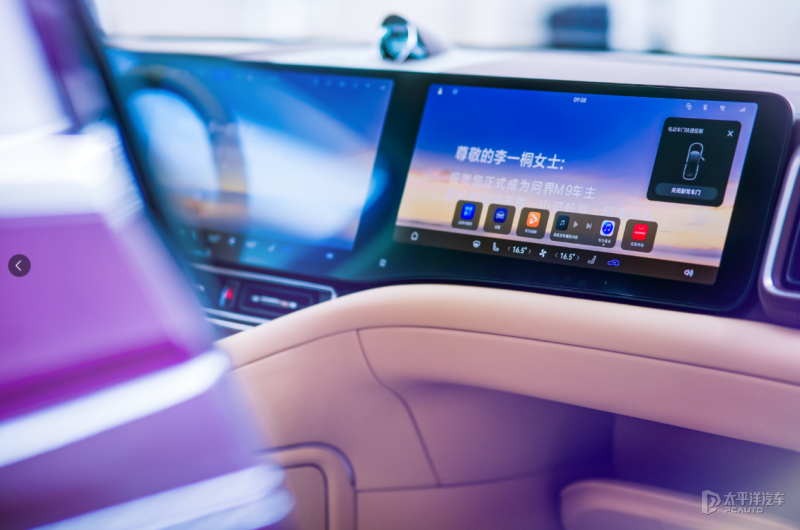 内饰方面,问界M9采用由12.3英寸全液晶仪表、15.6英寸中控屏和16英寸副驾娱乐屏组成的三联屏设计,搭载最新的鸿蒙座舱,支持华为星河通信,创新分布式车载卫星通信。配置上,问界M9尊四座标配双百万摄像智慧投影大灯、零重力座椅套装、智能隐私车窗和电动踏板。