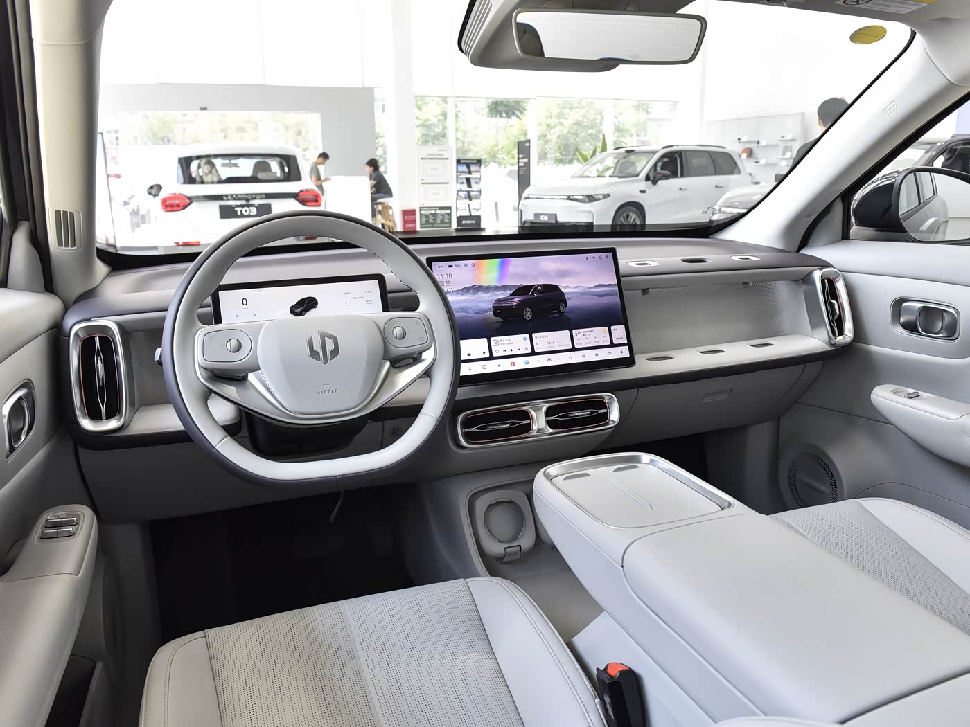 进入车内,座舱采用 “悦动几何” 设计理念,通过圆角矩形元素与双拼色内饰(黑灰 / 黑米)营造温馨氛围,中控台以 14.6 英寸悬浮式中控屏为核心,6.8mm 窄边框设计让屏占比高达 89%,显示细腻度可达 2.5K 分辨率。车机搭载 Leapmotor OS 4.0 Plus 系统,基于高通骁龙 8295 芯片运行,AI 算力