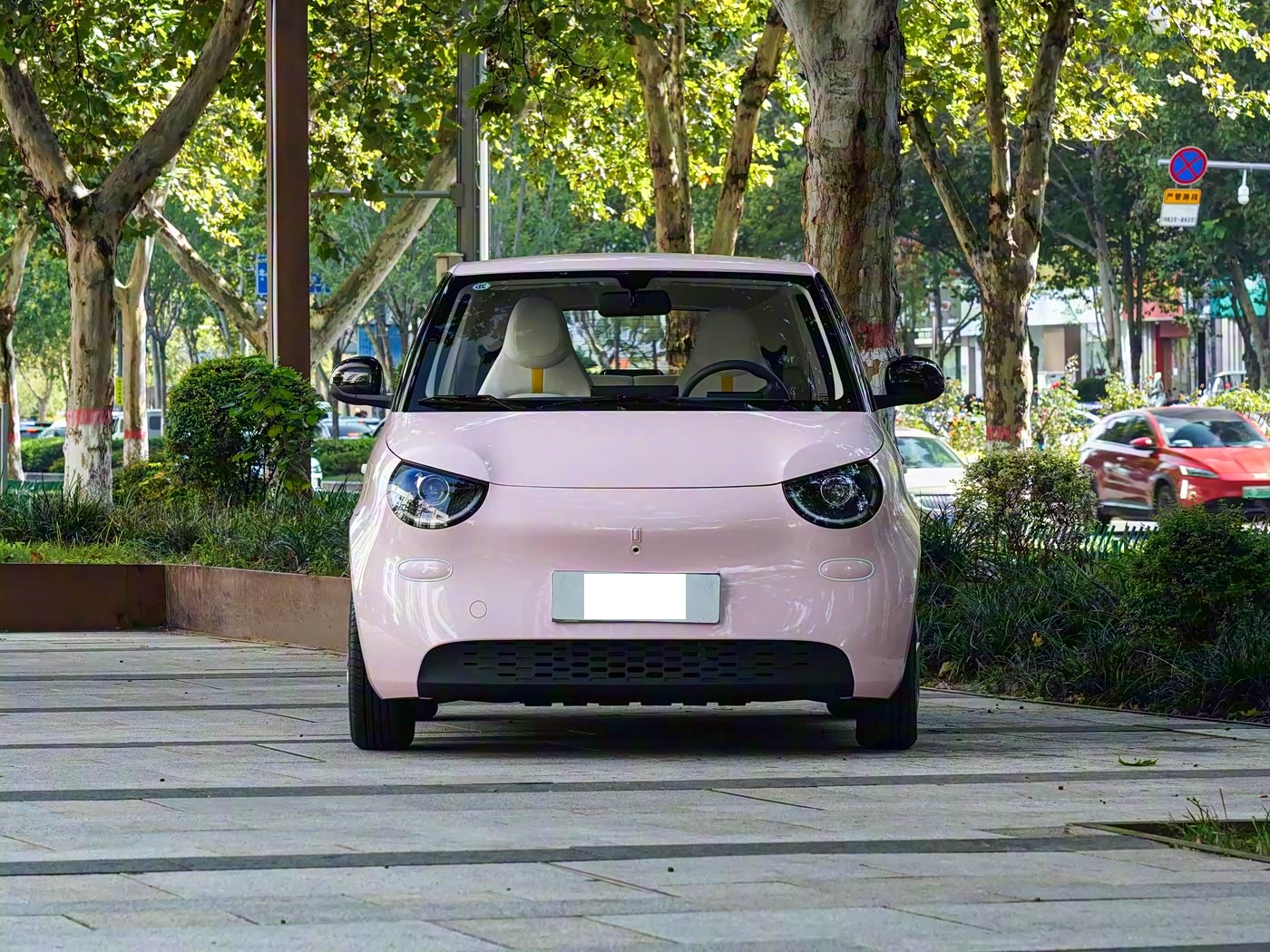 我们首先来看新车的外观设计方面,埃尚纯电动微型车的车头设计以 “圆润亲和” 为核心,同时融入新能源车型的科技特质,形成极具辨识度的视觉符号。前脸采用封闭式格栅设计,这也是纯电车型的标志性元素,不仅优化了空气动力学性能,更通过细腻的漆面质感营造出简约高级的视觉效果,彻底摆脱了传统燃油微型车的廉价感。格栅下方配备动感的黑色网格状饰板,与两侧灯组形成巧妙衔接,既增强了前脸的层次感,又为可爱的造型注入一丝运动气息。车头最引人注目的莫过于双圆形前灯组,灯腔内部采用 LED 光源,点亮后如同灵动的眼眸,配合圆润的灯组轮廓,进一步强化了车辆的萌系属性。