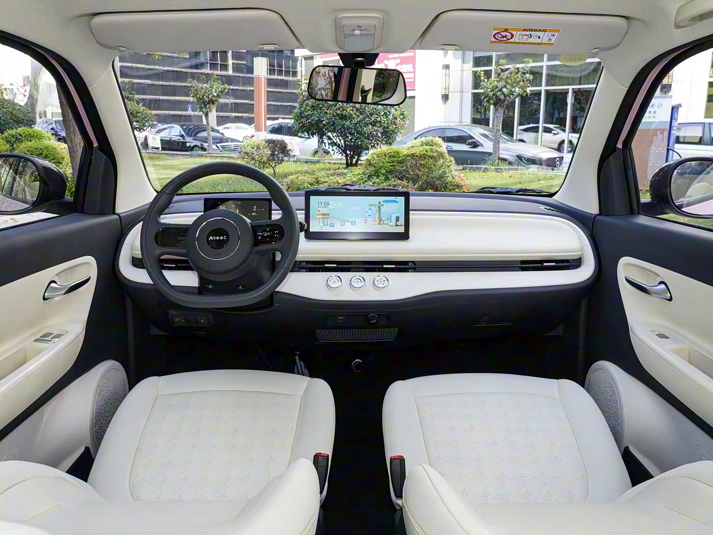 进入车内,埃尚的内饰设计让人眼前一亮,彻底颠覆了传统微型车 “简陋廉价” 的固有印象。中控台采用对称式布局,整体造型简洁大方,上方覆盖大面积软性搪塑材质,触感细腻温润,配合缝线工艺点缀,营造出远超级别的质感表现。仪表盘与中控屏的组合兼顾实用与科技感,配备 7 英寸液晶仪表与 10.25 英寸中控触控屏的双联屏设计,液晶仪表可显示车速、续航、电量等核心行车信息,界面设计简洁直观,数据读取清晰方便;中控屏支持触控操作,响应速度灵敏,内置蓝牙连接、手机互联、倒车影像等基础功能,日常使用便捷高效。空间表现是埃尚的核心优势之一,虽然定位微型车,但 1980mm 的轴距与合理的布局让车内空间利用率极高。