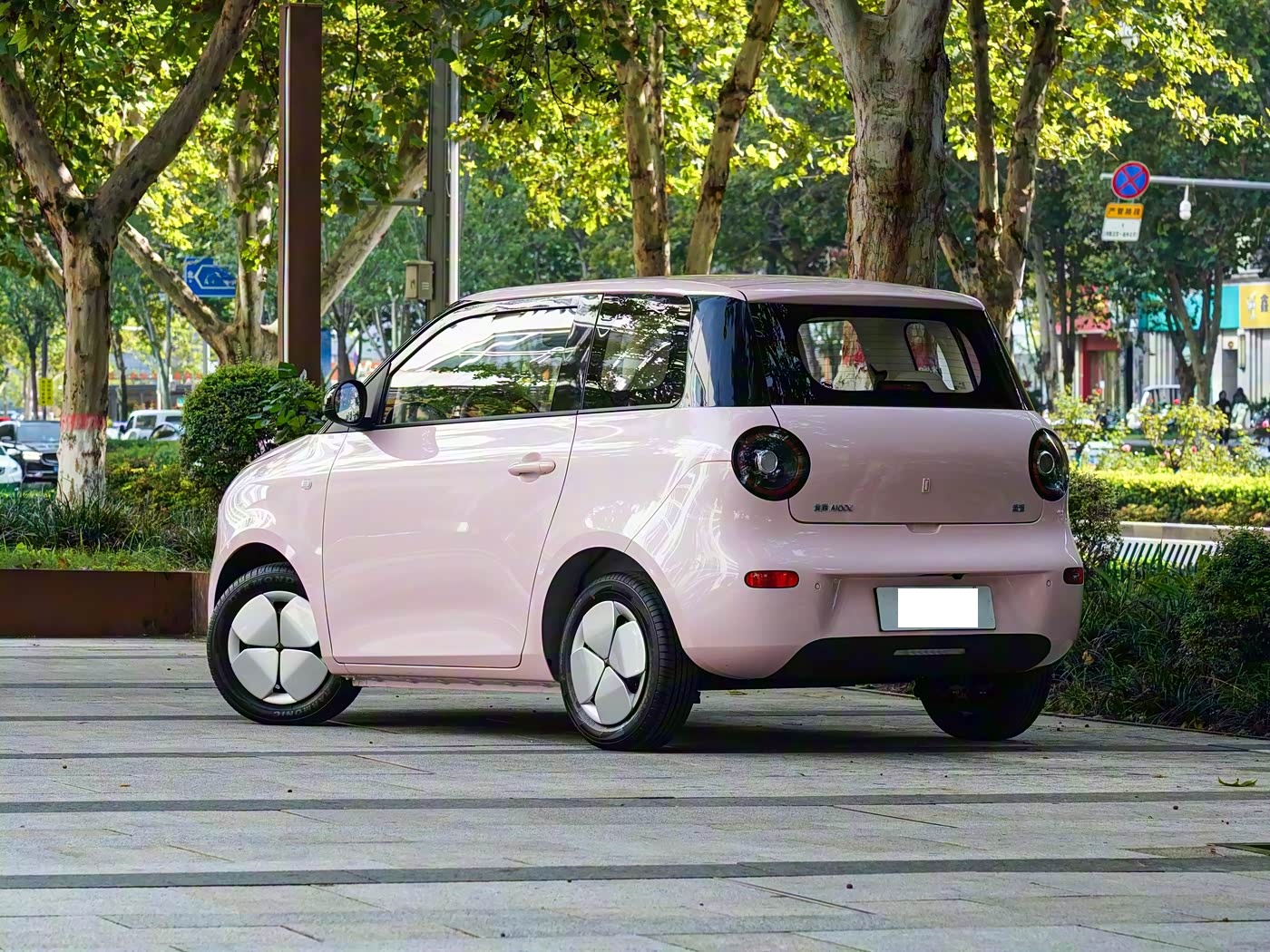 再来看车尾部分,车尾造型延续了车头的圆润设计语言,整体线条平滑规整,没有多余的复杂装饰,展现出简约实用的设计理念。尾部轮廓呈饱满的弧形,配合微微上翘的尾箱盖边缘,既优化了空气动力学性能,又形成了类似 “小扰流板” 的视觉效果,为简约的尾部增添了一丝运动气息。尾灯设计与车头前灯形成完美呼应,同样采用双圆形灯组造型,内部配备 LED 光源,点亮后亮度均匀柔和,夜间辨识度极高。灯组外圈加入黑色饰圈点缀,与悬浮式车顶的熏黑立柱形成视觉联动,增强了整车设计的统一性。后包围采用上下分层设计,上半部分与车身同色,下半部分采用黑色塑料材质,这种设计不仅符合微型车的成本控制需求,更能有效抵御日常使用中的刮擦损伤。