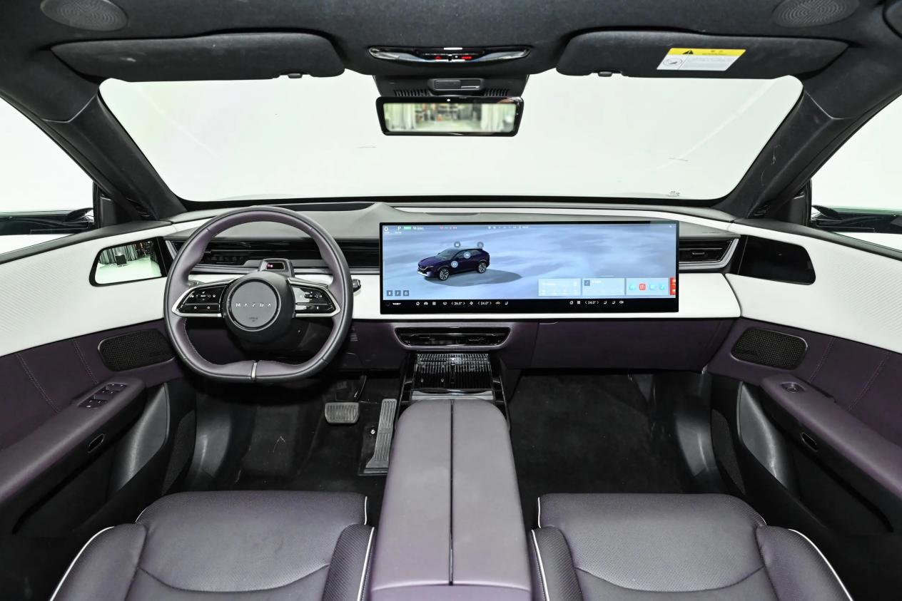 整车搭载6屏联动系统,包括26.45英寸5K中控副驾一体式大屏、50英寸(可选装100英寸)裸眼3D HUD、电子外后视镜屏(6.7英寸,选装)、流媒体内后视镜(选装)和后排控制触摸屏,总显示面积高达150英寸,中控大屏边框窄,屏占比高,显示效果细腻。