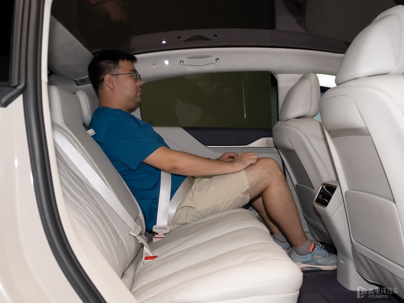 至境L7搭载四座全功能悬浮层座椅,均采用NAPPA真皮包覆,含12层支撑结构,静态乘坐贴合度提升14.6%、包裹度提升45%,动态行驶回弹高度减少50%,支持加热、通风、按摩、电动调节,后排座椅离地高度607mm;副驾则配备双120°零重力座椅,配备可伸长103mm的4向电动腿托,可将座椅调整至大腿与躯干、小腿与大腿夹角均为120°的零重力坐姿。