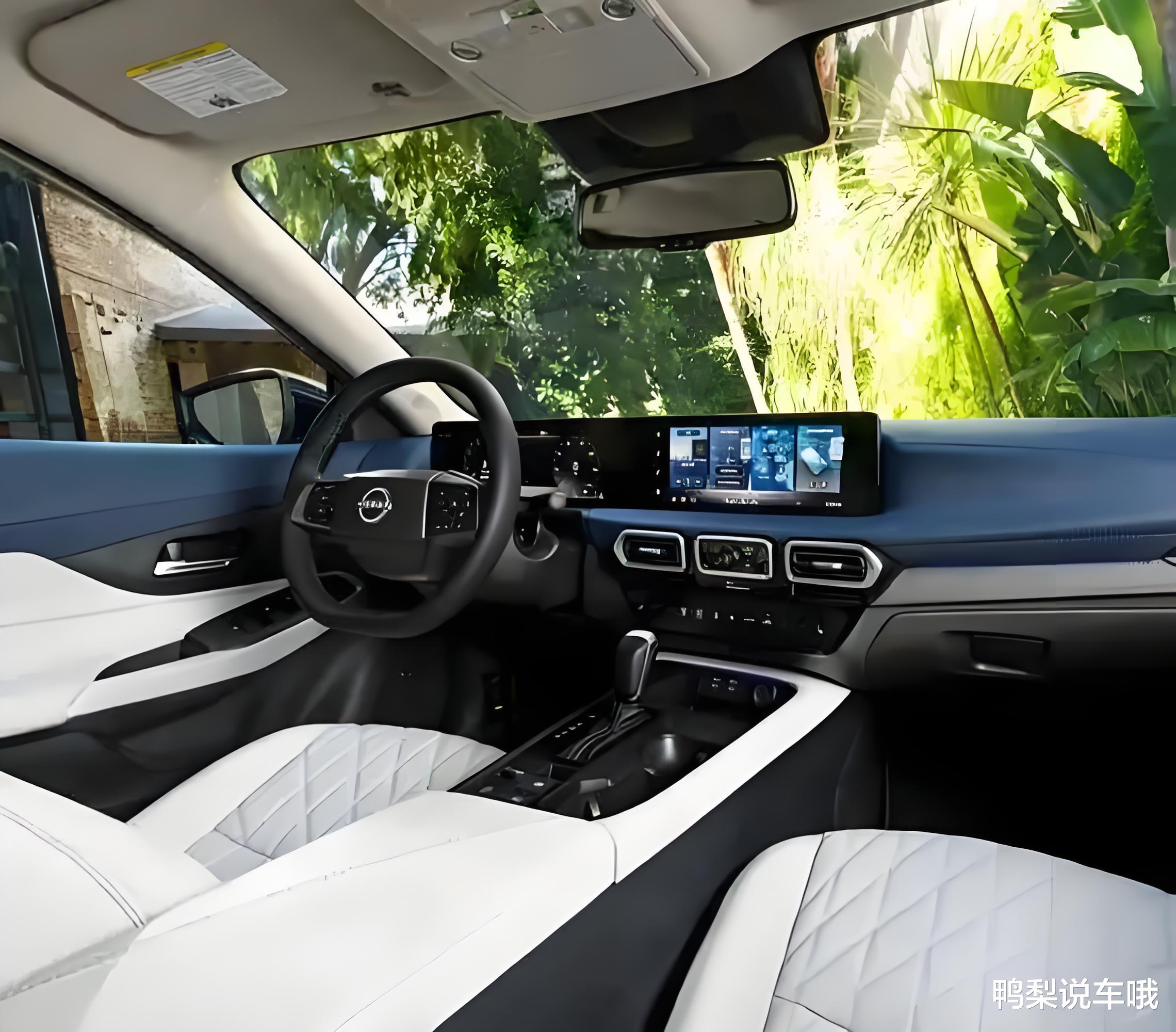 内饰方面,全新轩逸终于跟上了时代潮流,新车换上了双幅式多功能方向盘和电子挡把。中控台设计更加简洁,并配备了双12.3英寸联屏设计,车机系统支持Android Auto和Apple CarPlay手机互联等功能,大幅提升了座舱的科技氛围。屏幕下方空调出风口改成了矩形设计,还保留了实体按键,方便行车中的盲操作。座椅还加入了菱形缝线工艺,整体质感提升明显。鸭梨认为,这套内饰终于让轩逸跟上了时代潮流,起码不会被吐槽"老气"了。