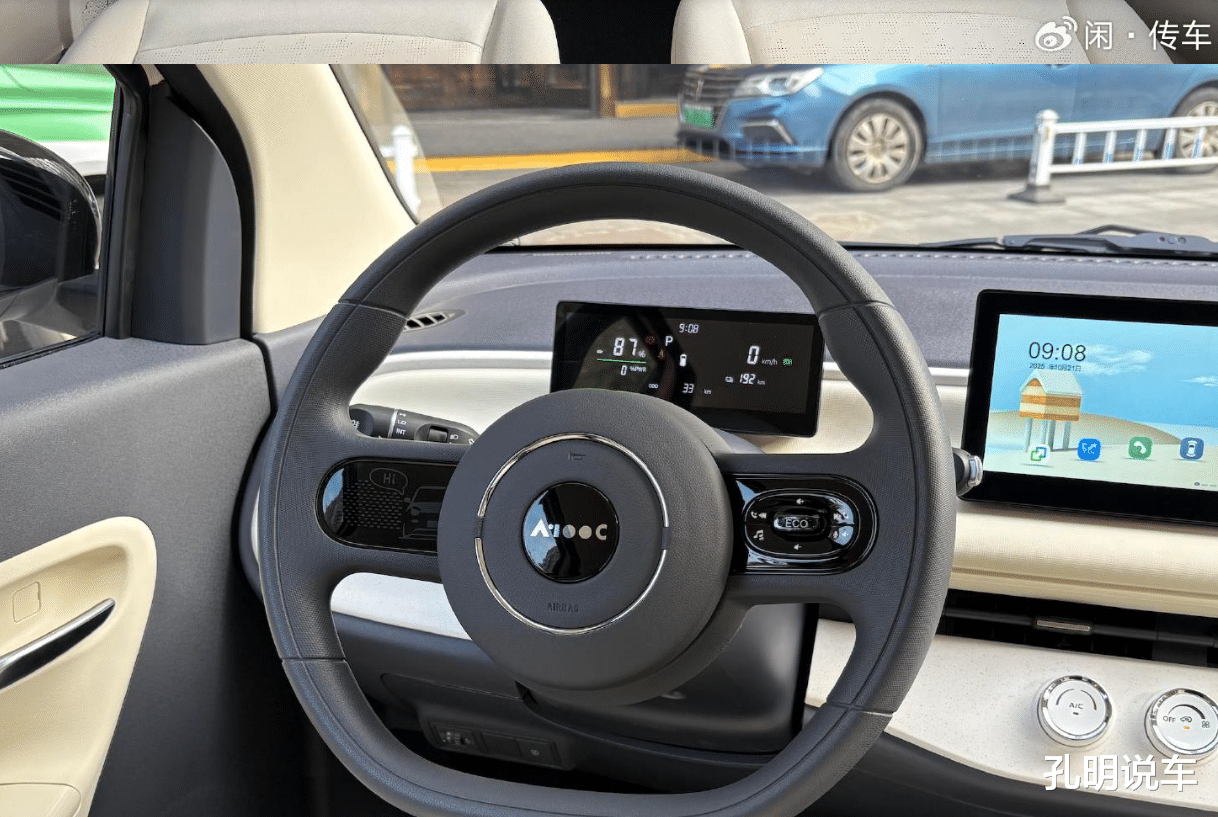 轮廓尺寸看起来也并不大,车身长度3285mm,不过还好宽度做到1708mm,实际体验车内的横向空间还算不错。不过毕竟轴距不到两米,而且两个侧面车门打开之后需要从座椅靠背位置挤进去,那后排相对来说就比较适合作为小孩的座位,如果真的是坐满成年人,整体舒适度就比较差了。