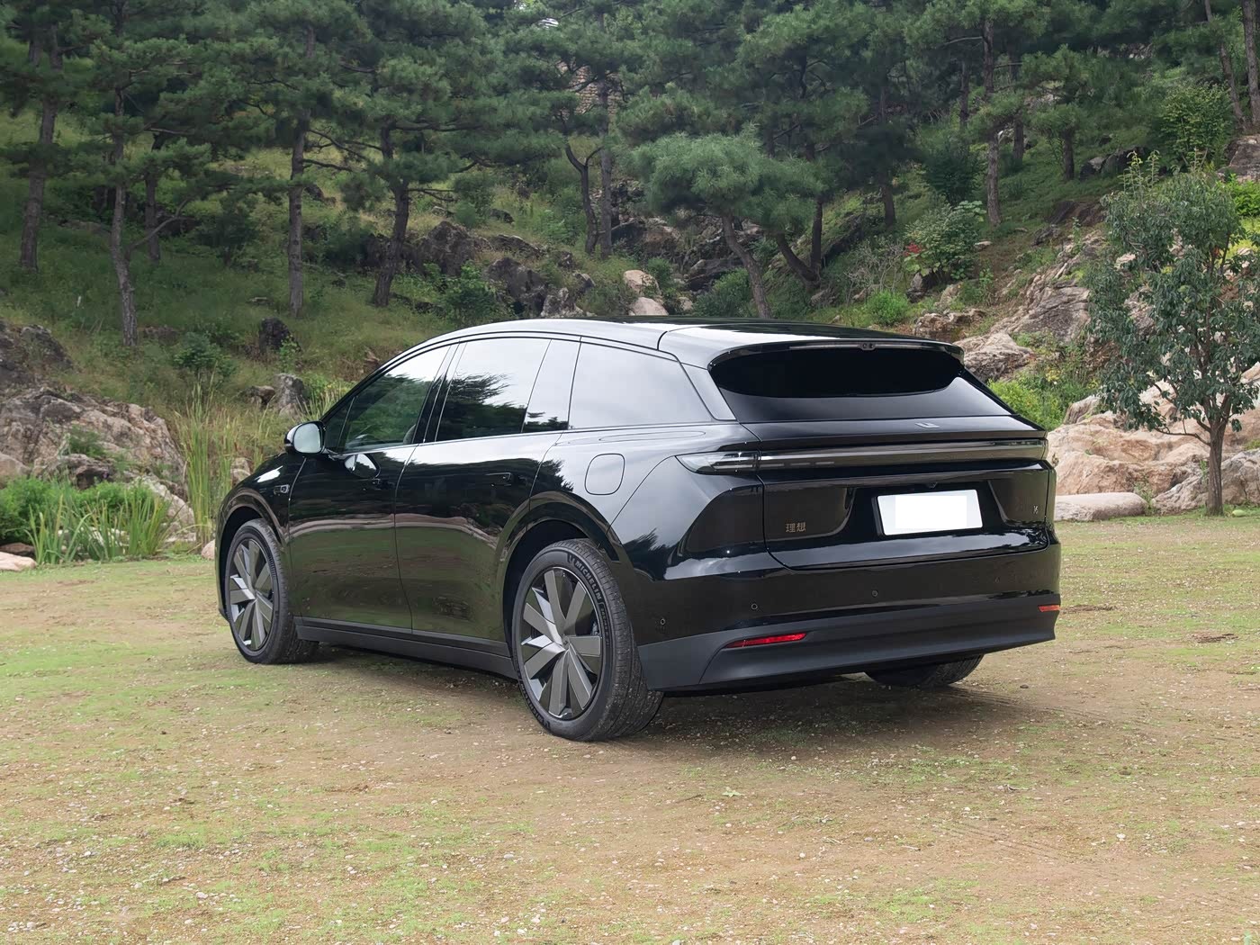 再来看车尾部分,车尾采用对称式极简设计,贯穿式 LED 尾灯与车头星环灯带形成呼应,灯带下方镶嵌 “LI” 标识,刹车时红光如流水般动态点亮,识别度极高。车顶小尺寸扰流板与后包围扩散器造型配合,进一步优化空气动力学性能。后包围采用黑色护板搭配银色饰条,隐藏式排气布局保持尾部整洁,双侧反光条设计增强夜间安全性。细节上,电动尾门为全系标配,支持感应开启,轻踢保险杠下方即可解锁,顶配车型还配备电吸门,关门动作优雅且静谧。