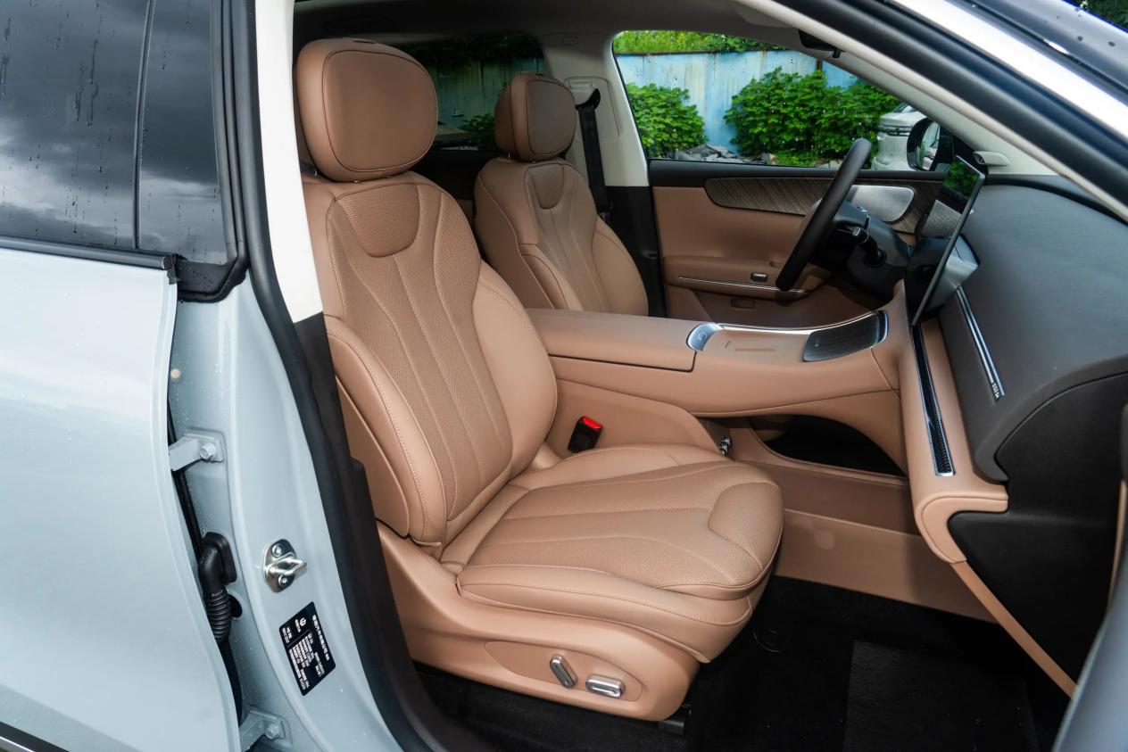 零跑C11在“坐”这件事上,是真的下了血本。前排座椅不仅造型好看,功能更是拉满:通风(还是吸风式的,体感更柔和)、加热、8点式SPA按摩都有。主驾有记忆和迎宾功能,上下车更有仪式感;副驾就更夸张了,带有一个超长的电动腿托,配合按摩功能,真有一种“头等舱”的享受。