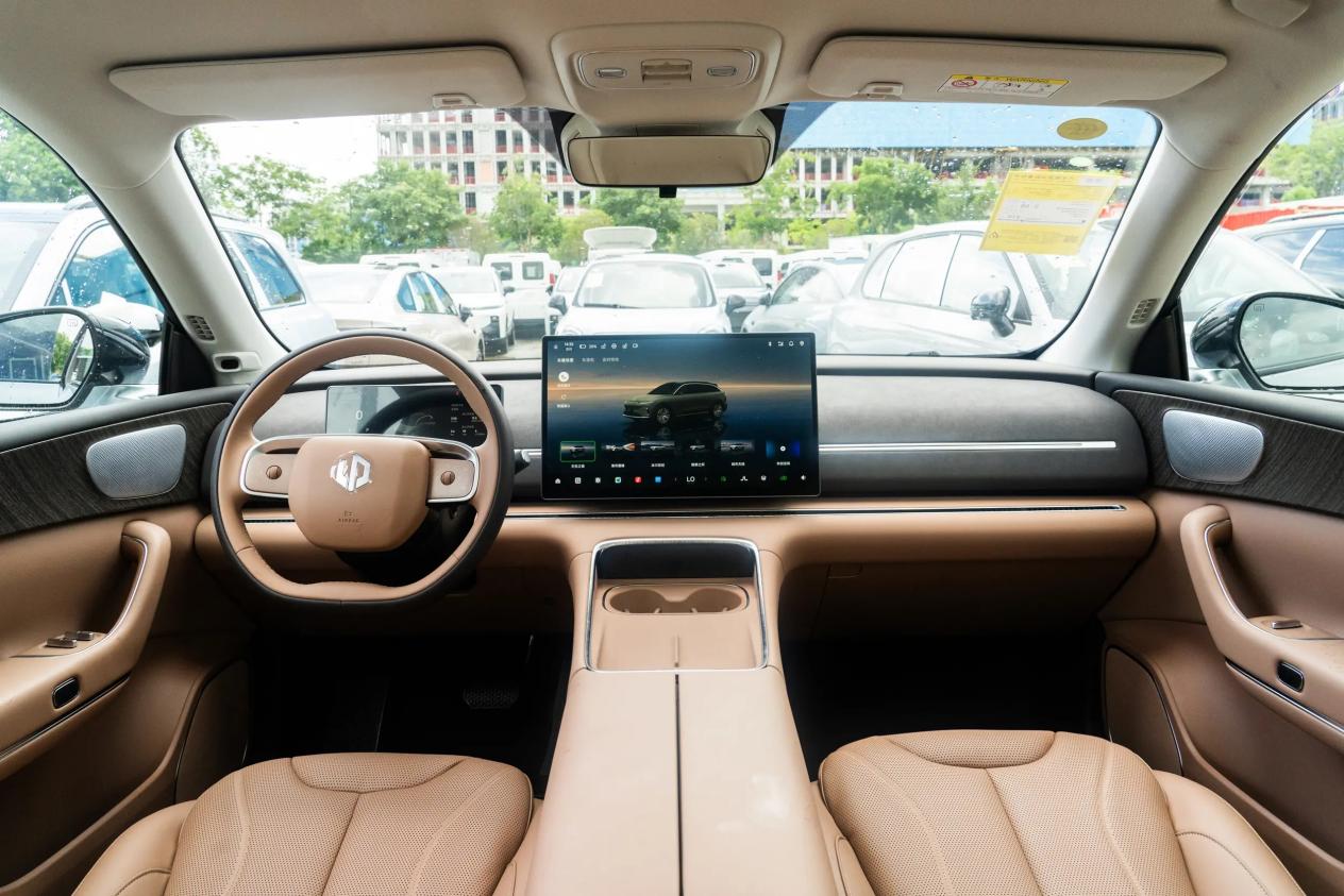 拉开车门,最吸睛的就是中间那块17.3英寸的超大中控屏,分辨率是2.8K,显示效果非常细腻,操作起来跟手感和高端平板电脑差不多。它用的是目前顶流的高通骁龙8295P车机芯片,所以无论你是导航、看视频还是多任务操作,系统都流畅得不像一台15万级别的车。