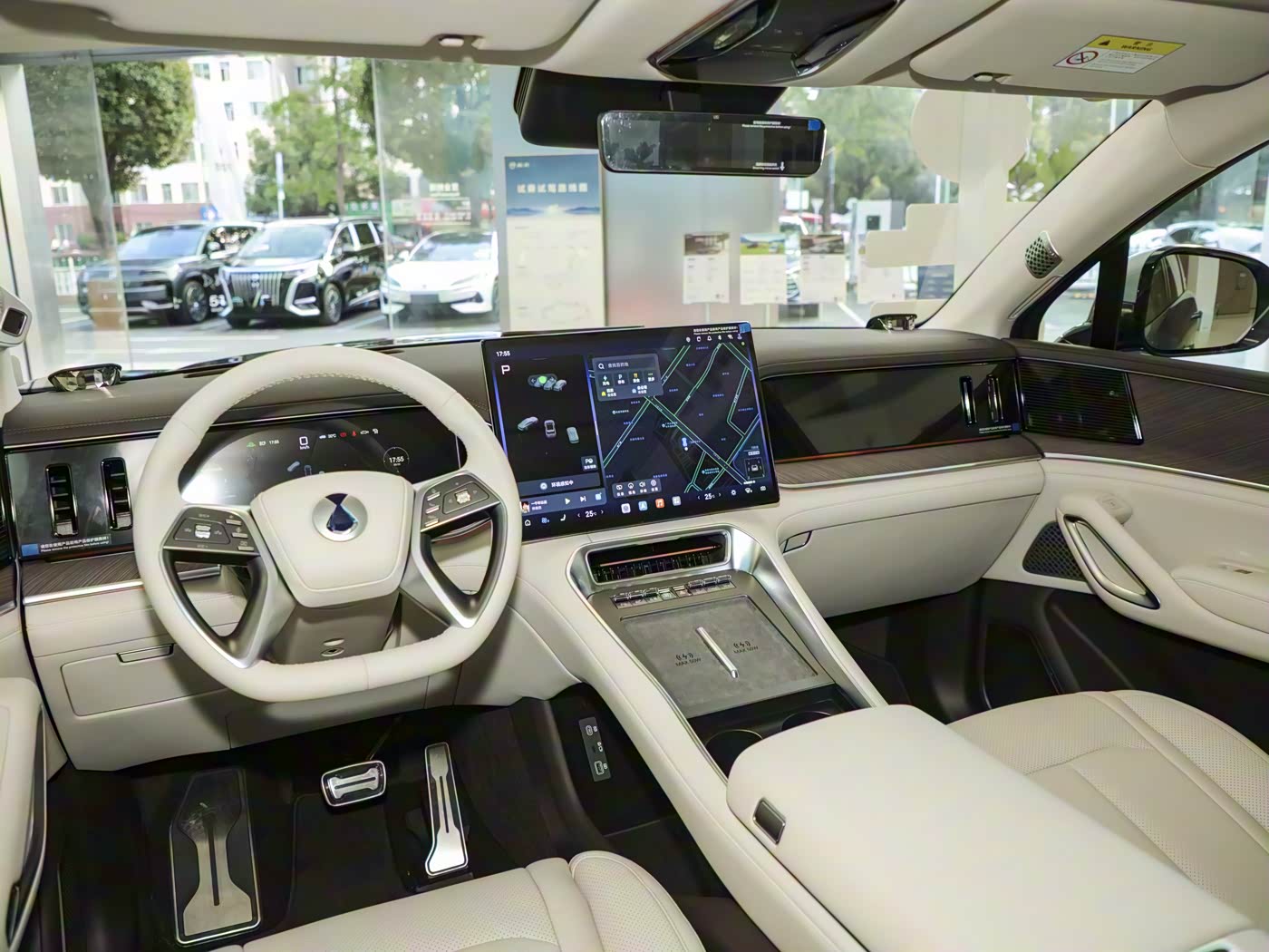 进入车内,内饰以 “金山棕” 配色营造轻奢氛围,一体式星穹智控岛集成 17.3 英寸中控屏、13.2 英寸全液晶仪表与 13.2 英寸副驾娱乐屏,配合 50 英寸 AR-HUD 与 17.3 英寸后排 2.5K 吸顶屏,实现 10 屏互联的科技体验。智能交互上,接入 DeepSeek 大模型的语音系统支持六音区识别与全场景连续对话,操作流畅且响应精准。