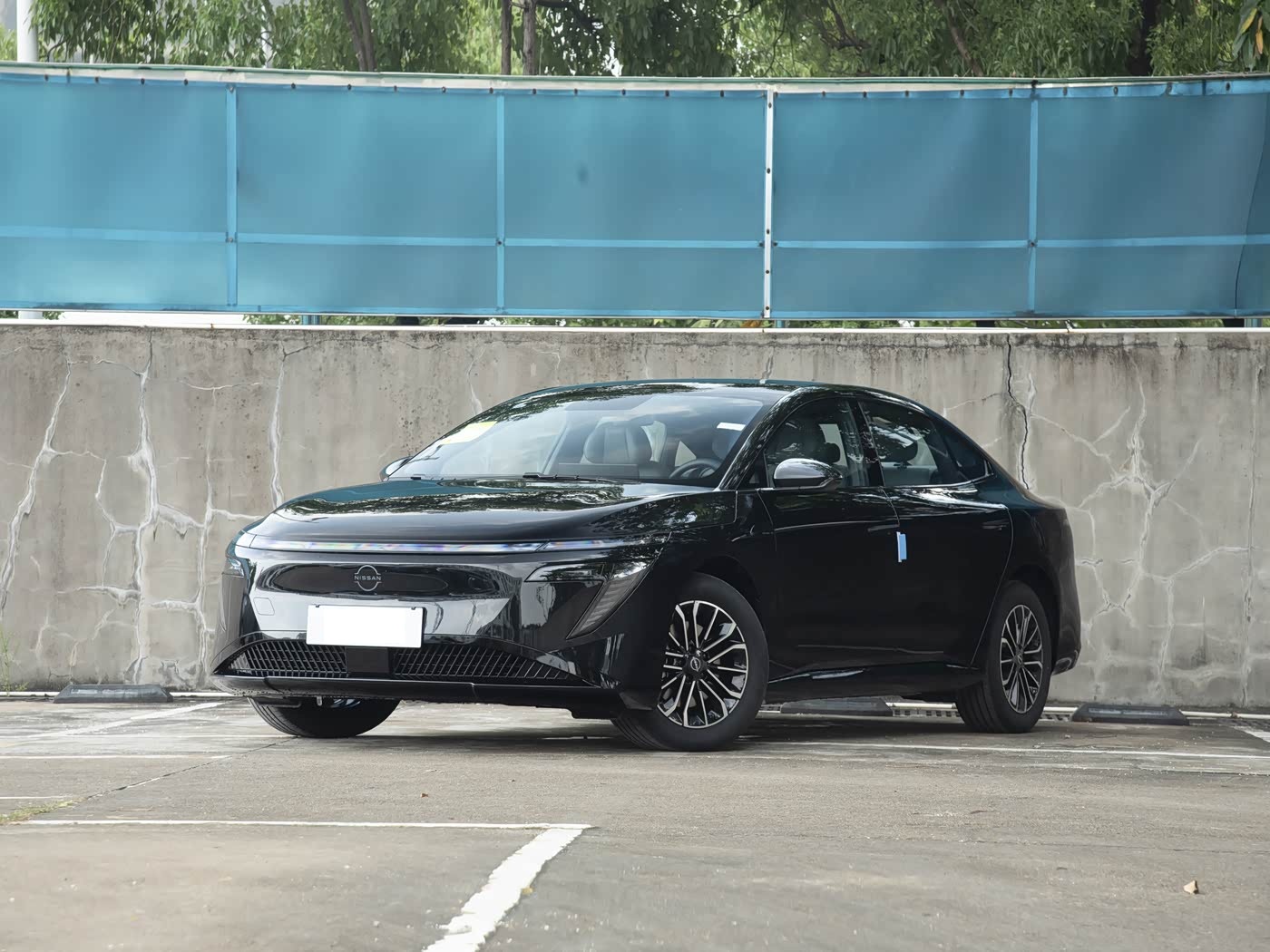 我们首先来看新车的外观设计方面,日产N7 的车头设计堪称合资电动车的审美突破,采用全新 V-Motion 流动设计语言,低俯宽大的姿态营造出强烈运动感。封闭式前脸是纯电车型的标志性元素,搭配由多颗高功率 LED 组成的贯穿式星环灯带,解锁车辆时会呈现动态迎宾灯语,夜晚点亮后辨识度拉满。最具巧思的是 “魔法画布” 智能交互灯语系统,不仅能自定义节日祝福,还可实时显示充电进度,让科技感转化为实用仪式感。六种车身配色中,霜雪白的珍珠漆在阳光下泛着彩光,森野青则透着低调运动气息,满足不同家庭的审美偏好。不过有用户反馈,浅色车身对前脸线条的勾勒稍显突兀,算是细微缺憾。