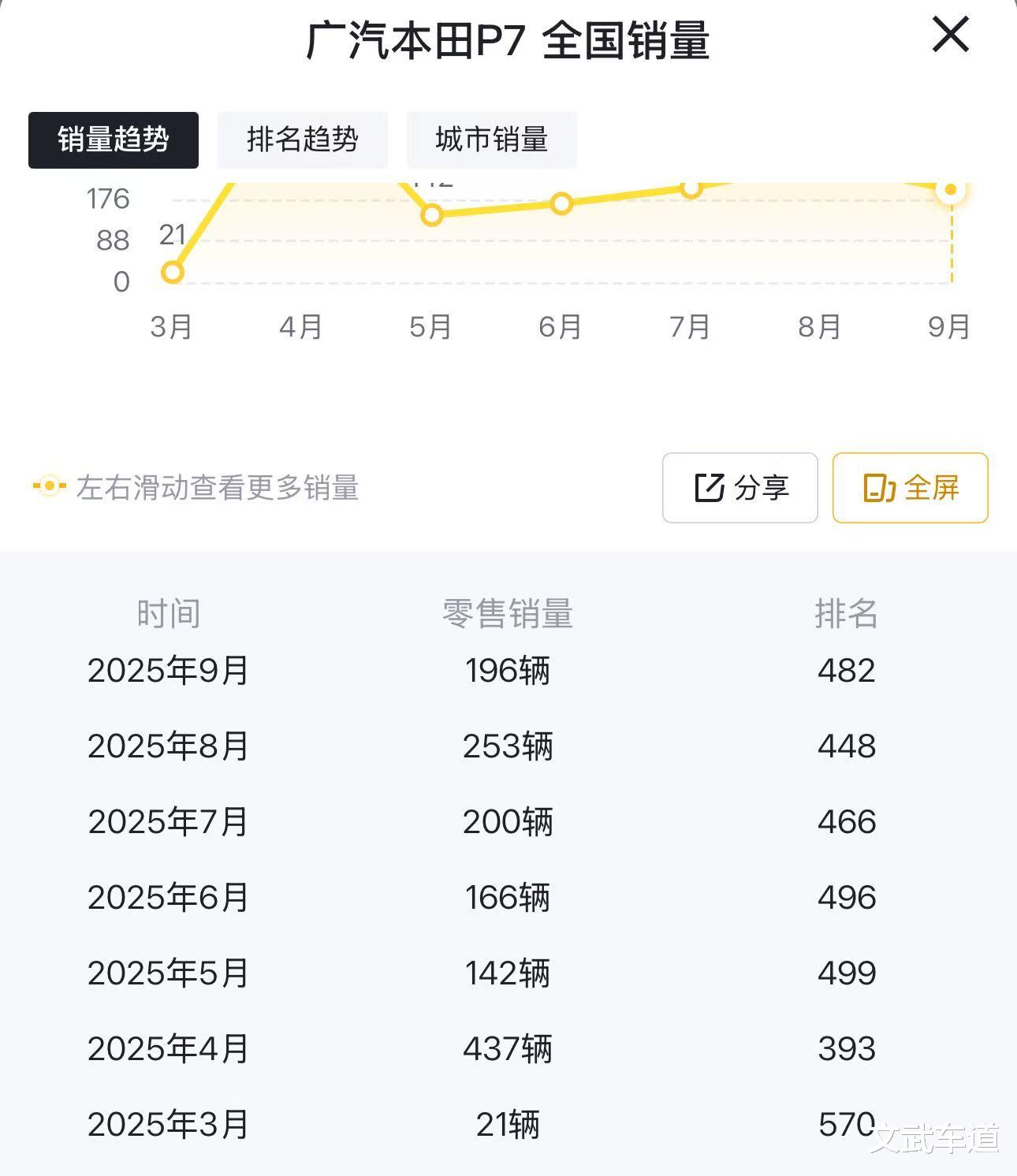 根据相关数据显示,广汽本田P7在4月份销量达到437辆后,接下来几个月的销量仅仅维持在200辆左右,整体销量总和仍未超过1500辆,不及当前热门纯电车型单月销量的零头。要知道,当时本田P7上市24小时就公布了订单量,达到了5365辆。但是目前来看,当初广汽本田公布的订单量还是有一定水分的。