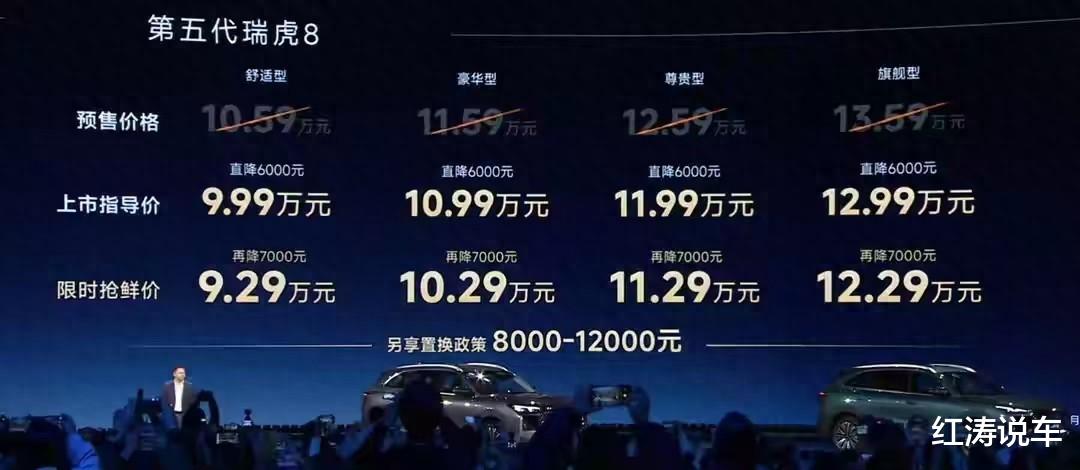 结语:全新瑞虎8的外观和内饰能够给我们带来一定的新鲜感,虎款和豹款两种设计可以满足不同人的审美,这款中型SUV的配置齐全,空间宽敞,1.6T动力不错,那么你会考虑它吗?本文由红涛说车作者原创,特此声明!