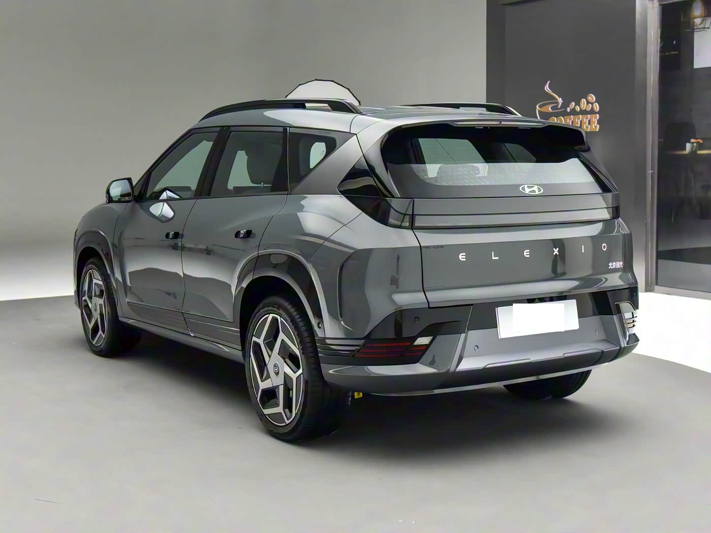 我们首先来看新车的外观设计方面,前脸以 “自然简约力量美学” 为核心,封闭式格栅搭配主动闭合式进气格栅,高速时闭合可降低风阻,低温时调节进气量维持三电系统稳定。大灯组内8 个方形灯组源自现代 logo “H” 的摩斯密码,与贯穿式灯带联动形成动态点亮效果,暴雨天穿透力远超同级别卤素灯。下方贯通式熏黑导风槽增强运动氛围,银色下护板则强化 SUV 属性,整体设计既规避了纯电车型的夸张科幻感,又通过细节传递出合资品牌的工艺质感。新增的哑光白、暮山紫等 7 种车漆,其中哑光白融入浅蓝调光晕,在不同光线下呈现晨曦般的渐变效果。