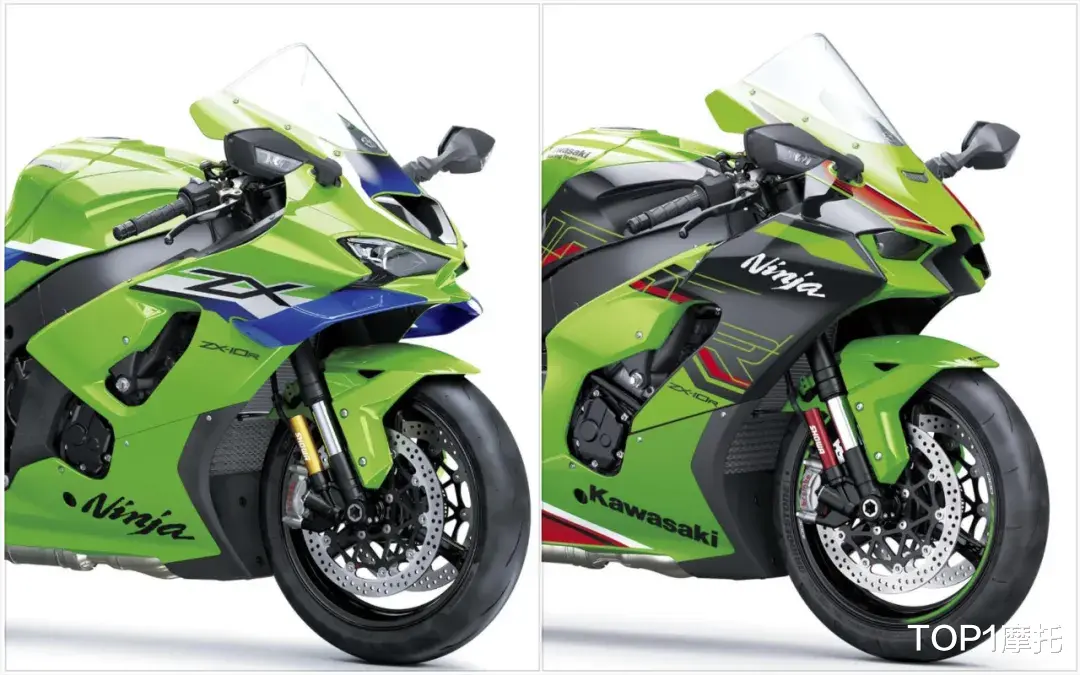 川崎ZX-10R 2026款整流罩经过重新设计,对比老款车型能够很明显的看到,新车车型外观的大致线条并未完全改变,而且细节部分的变动比较明显,尤其是侧面的进气口位置和车身侧包围造型有些不同。