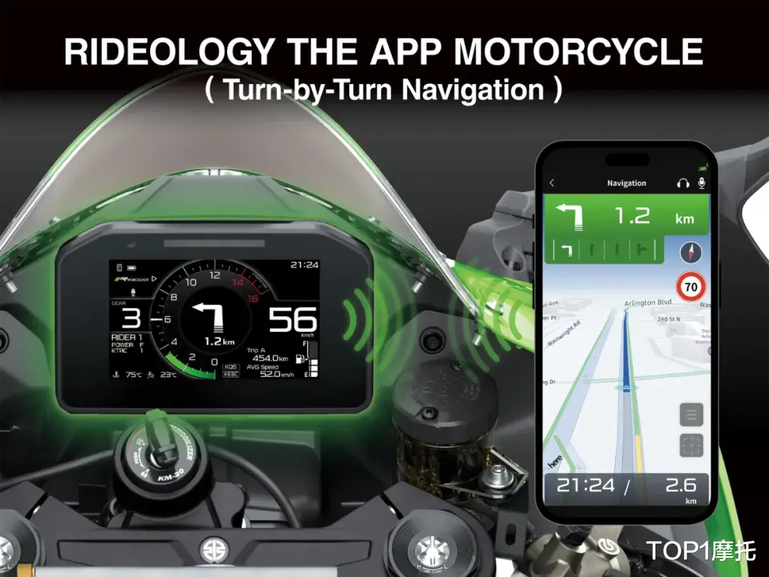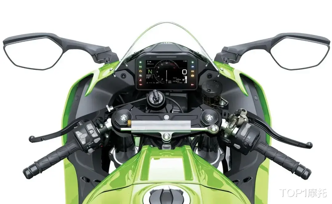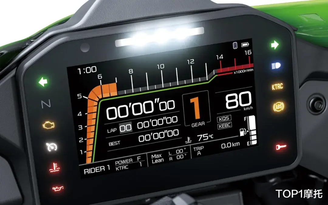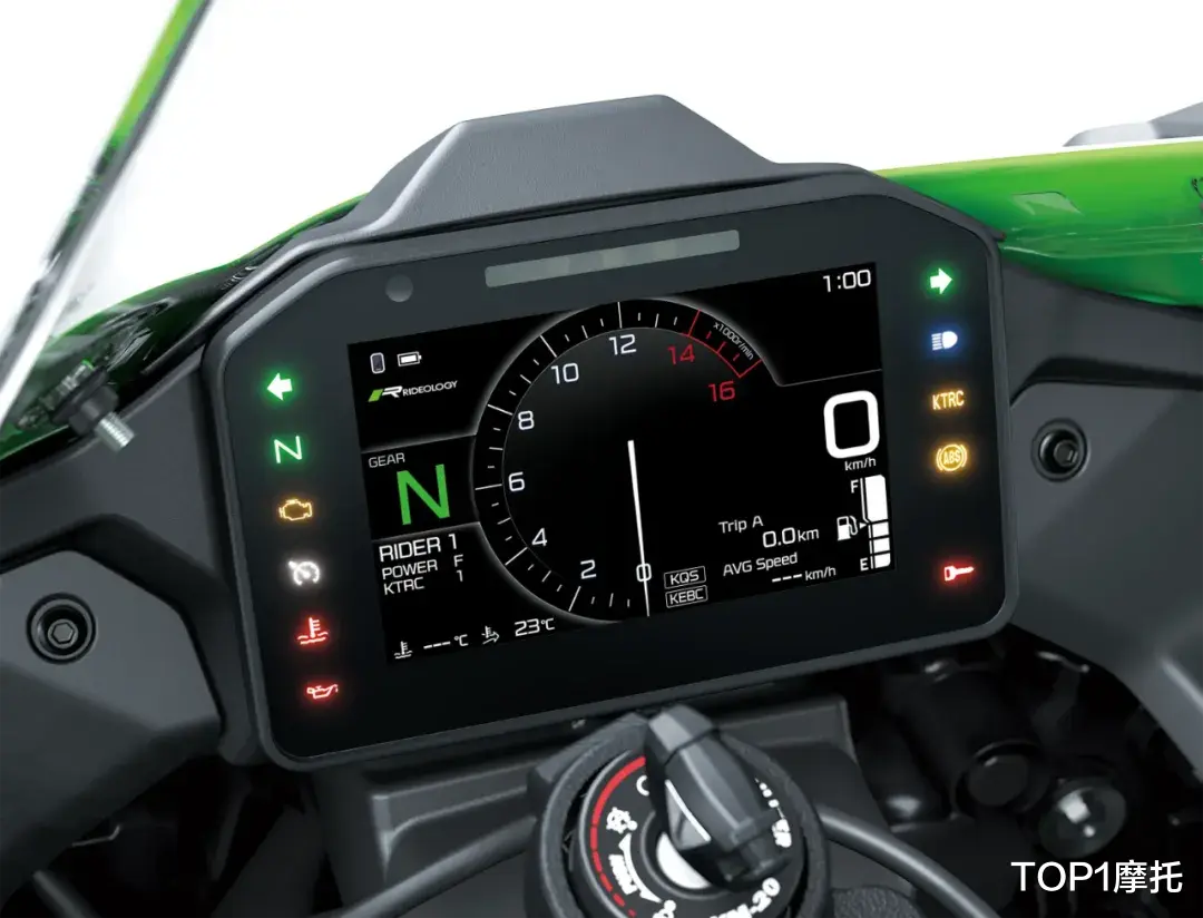 ZX-10R还升级了电子设备,全新的家族化5英寸TFT仪表,与新款Z900的仪表类似,不仅UI设计更加美观,还有两种主题可选,功能也更为全面,另外还可通过手机APP提供更多的功能,最重要的是新的仪表新增了逐向导航和语音控制功能,进一步提升了实用性。川崎全套电子辅助系统得以延续,包括S-KTRC牵引力控制系统、KLCM起步控制系统、KIBS制动系统、川崎发动机刹车控制系统、双向快排,巡航控制,以及多种集成骑行模式和动力模式。