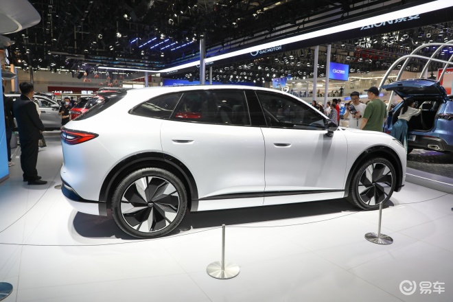 车身侧面,新车整体使用上了流线的造型,看上去动感流畅。此外,我们在前翼子板上还能看到新车拥有一块显示屏,可以显示电量等行车信息。车身尺寸方面,新车长宽高分别为4820/1920/1685mm,轴距为2920mm。
