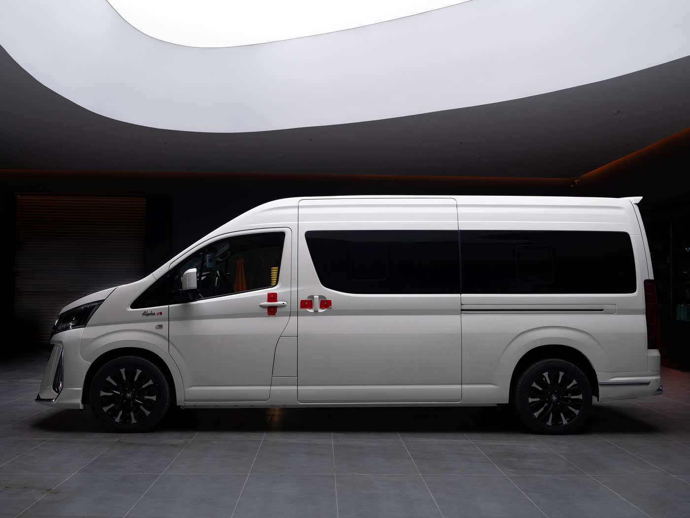 再来看车身侧面部分,克慕勒阿尔法AL采用了时尚动感的线条设计,从车头延伸至车尾,流畅自然。大尺寸厚壁的轮胎搭配独特的轮毂设计,参考东方美学拟态龙元素,如龙爪之力、龙鳞之美,彰显出车辆的活力态势。车身尺寸为5310mm×1958mm×2090mm,这样的尺寸不仅保证了车内空间的宽敞,还让车辆在行驶过程中更加稳定。侧滑门的设计不仅方便乘客上下车,更增添了一份豪华感。整体车身造型优雅大气,无论是商务场合还是休闲出行,都能成为焦点。
