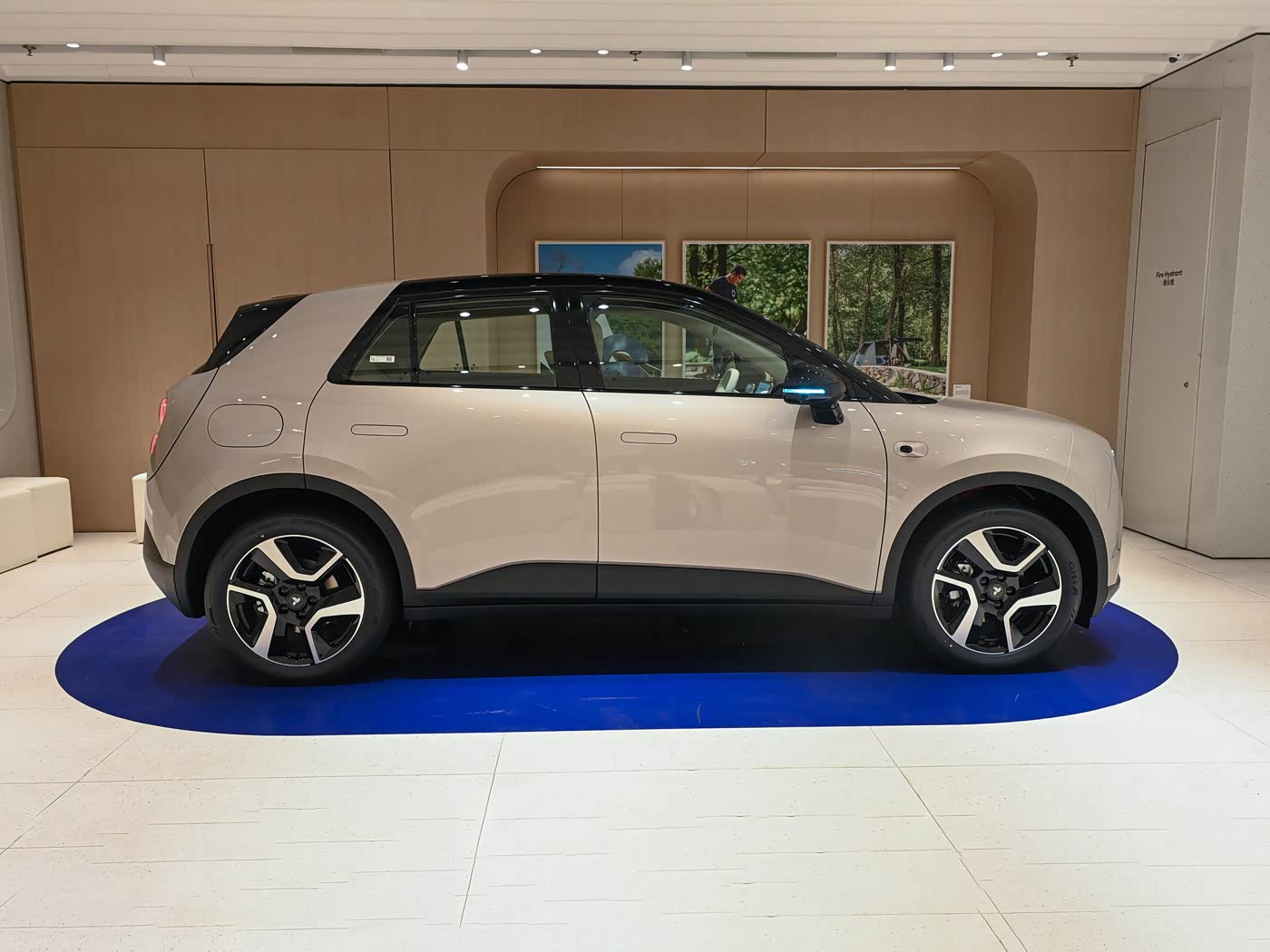 再来看车身侧面部分,车身侧面保持了紧凑而流畅的线条,4003/1781/1557mm的车身尺寸搭配2615mm的长轴距,营造出“小车身大空间”的视觉效果。短前后悬设计配合四轮四角布局,不仅提升了车辆的通过性,还让车身姿态更加灵动。新车新增了美拉德车色,灵感源于波尔图老城区的橘红色砖瓦,复古又时尚,为消费者提供了更多个性化选择。同时,换装的18英寸星轨双色合金轮毂,造型动感十足,进一步强化了整车的运动属性。外后视镜两侧新增的智驾小蓝灯,可直观显示智能辅助驾驶状态,兼具实用性与科技感。