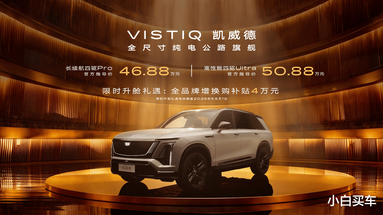 (2026年4月22日)今日,凯迪拉克以奥斯卡级盛典规格,将上海保利大剧院点亮为璀璨舞台,在品牌代言人倪妮与全场嘉宾的共同见证下,凯迪拉克全尺寸纯电公路旗舰——凯威德耀然上市。本次凯威德共推出2款车型,售价46.88万元-50.88万元,并推出限时升舱礼遇,可享不限品牌4万元同级最高增换购补贴。同时,凯迪拉克为首批凯威德尊贵车主量身定制总价值高达8万元的八大尊享礼遇,包括SUPER CRUISE PRO by Momenta高阶辅助驾驶终身使用权和智驾无忧险的智驾礼、车损超三成免费换新车的金身礼、三电终身质保的金质礼等重磅权益;车主更可直接升级凯威德专属黑金会员,以顶格礼遇匹配旗舰身份。承袭凯迪拉克百年豪华底蕴,汇聚全球顶奢材质与行业前沿的智能科技,凯威德以王者之姿入局,重新定义公路旗舰的格局与高度。