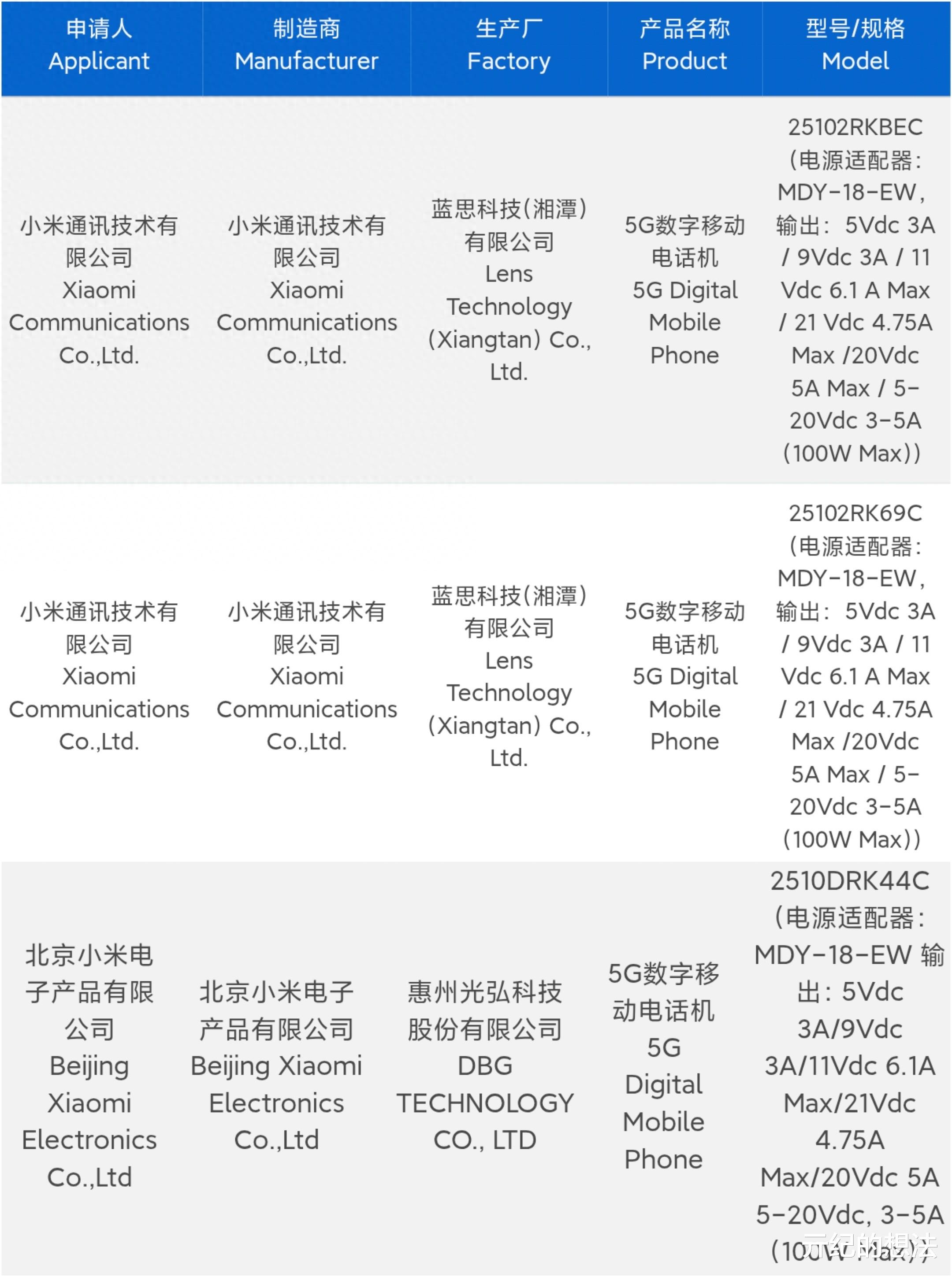 红米K90系列全部入网,全系标配100W有线充电,是子系列中首批骁龙8Elite Gen5新机,所以发布时间应该是2025年10月份。今年发布的机型有两款,红米K90采用6.59英寸小直屏,红米K90Pro搭载最新的骁龙8Elite Gen5芯片,还有7500毫安时和5倍长焦镜头。(爆料仅供参考,一切配置和数据以官方发布会为准)