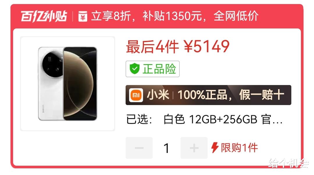 小米15 ultra当初定价6499元起,现在在平台内跌到5149元,降价幅度达到1350元,即使是选16G+512G也就是五千五六的样子,价格比小米17 pro max还要便宜,而且这本来就是超大杯顶配,各方面配置还足够强悍,搭载骁龙8Gen 3处理器和LPDDR5X+UFS4.0存储规格,升级到澎湃OS 3操作系统后还能流畅稳定再用五六年。