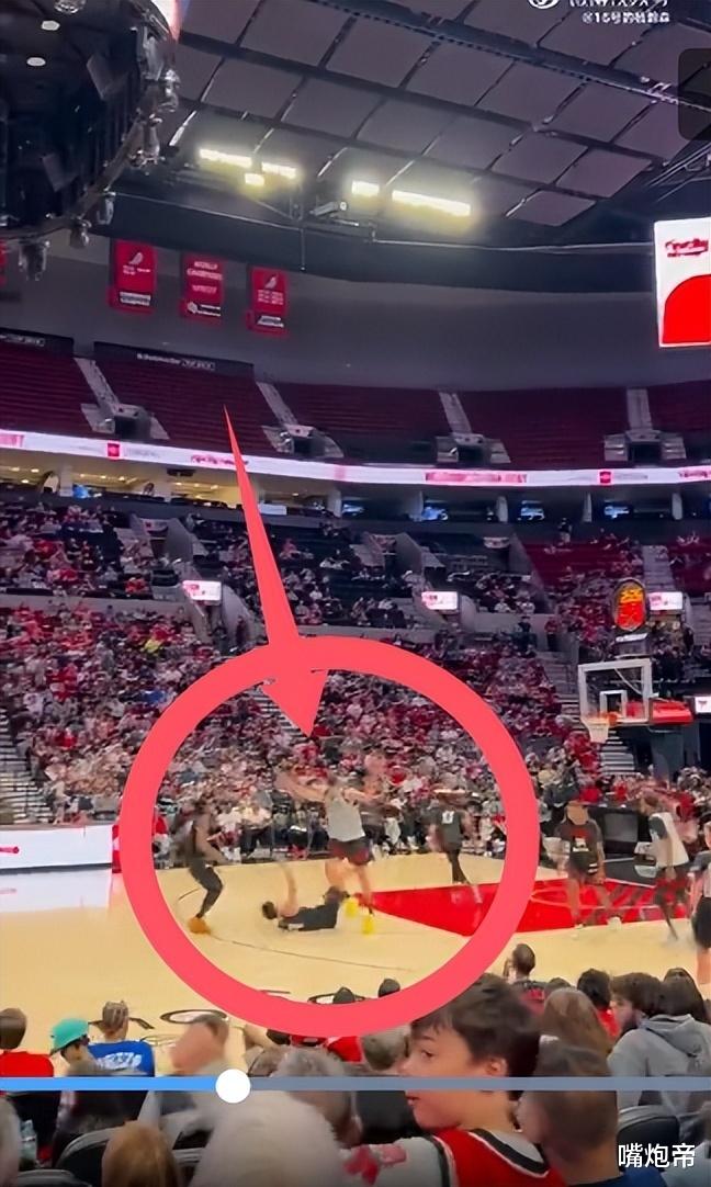 这次杨瀚森和霍勒迪一个队,面对的是克林根和开拓者的一群先发,而这次杨瀚森面对克林根完成了非常精彩的多次单打进攻。尤其是一次高难度的单挑克林根抛投2+1太帅了,但是就是这个动作把克林根给打急眼了,没想到自己竟然被杨瀚森单打,而且是脚步戏耍无情羞辱,所以克林根恼羞成怒之下直接给了小杨一肘子,直接把杨瀚森给肘倒。