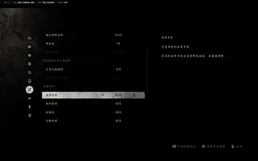 测试时,我们将游戏画质设定在超高画质,而非最高的影视级画质,分辨率就设定在默认的2.5K。