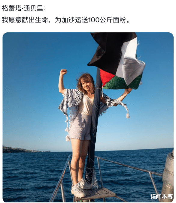 数日前,格蕾塔·通贝里又组织了一个多达42艘船的“全球坚韧船队”,再次出发要突破以色列的封锁,为加沙运送急需的人道主义物资。
