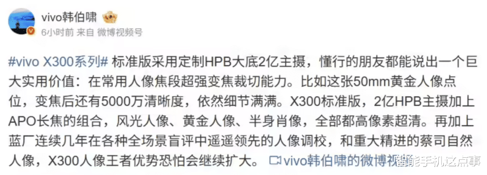 根据爆料,vivo X300采用定制HPB大底2亿主摄(1/1.4英寸传感器)与APO长焦组合,在常用人像焦段如50mm点位,通过变焦裁切仍能保留5000万像素的清晰度。