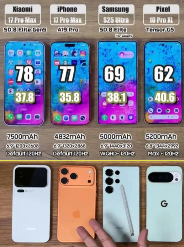 海外博主做了一项备关于当前一些主流旗舰手机极限续航测试。横向对比了包括小米 17 Pro Max、苹果 iPhone 17 Pro Max、三星 Galaxy S25 Ultra 等手机的续航。
