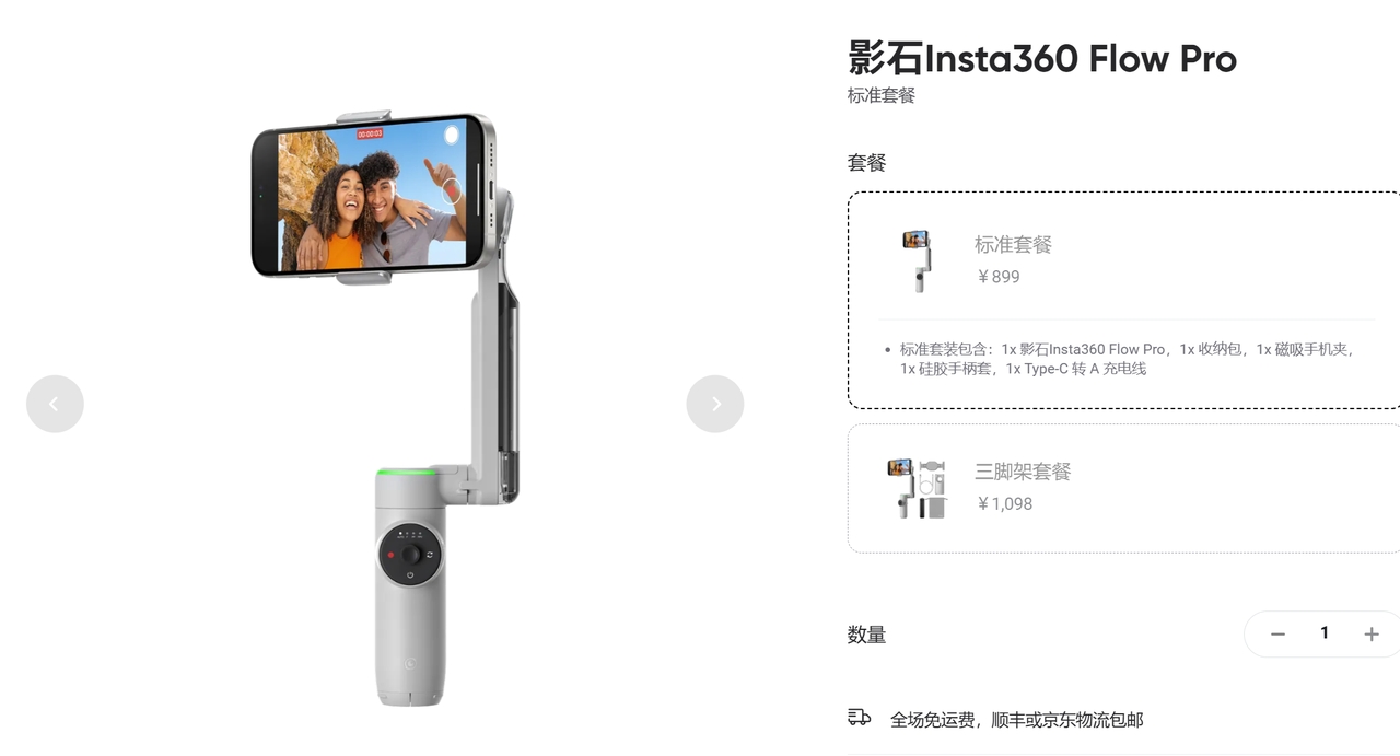 Pocket3正常的标准价格是3499元,在本次降价之后仍有2799元,而Insta360FlowPro却仅需要899元。