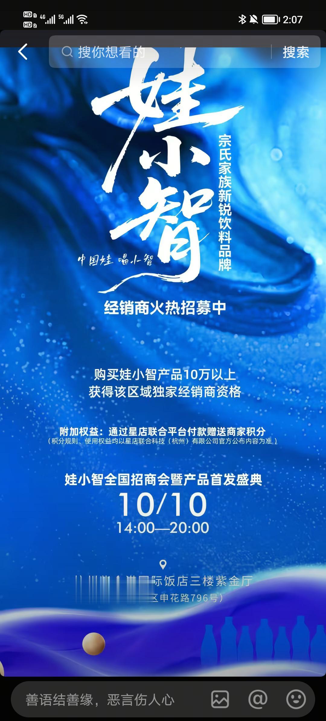 蓝鲸新闻10月11日讯(记者郝妍赵梦)娃哈哈事件并没有因宗馥莉辞职告一段落,继宗馥莉推出“娃小宗”后,宗馥莉叔叔宗泽后的品牌“娃小智”也于近日开启招商活动。