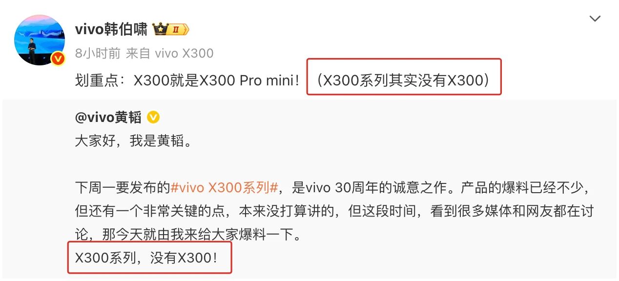 官方强调,虽然这机子叫 X300,但 X300 系列没有 X300,因为它是基于 X200 Pro mini 升级,所以更准确的叫法是 X300 Pro mini。而改名则是为了顺应消费者的理解,因为今年只发两款机型。