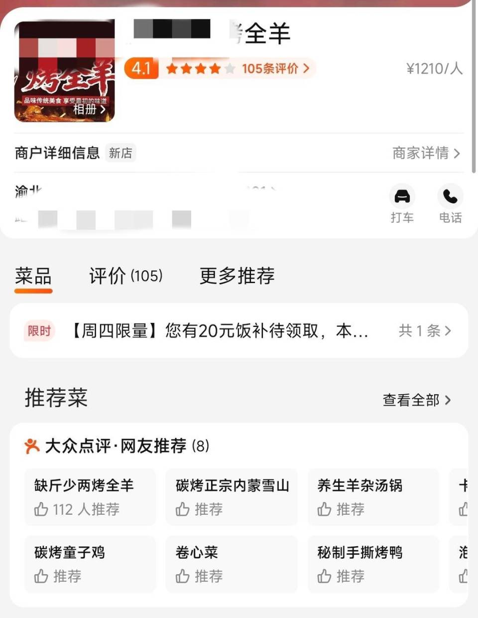 通过搜索大众点评、美团等平台,巴南区“盘古烤全羊”店已显示暂停营业。平台上提供的电话也无法联系到商家。