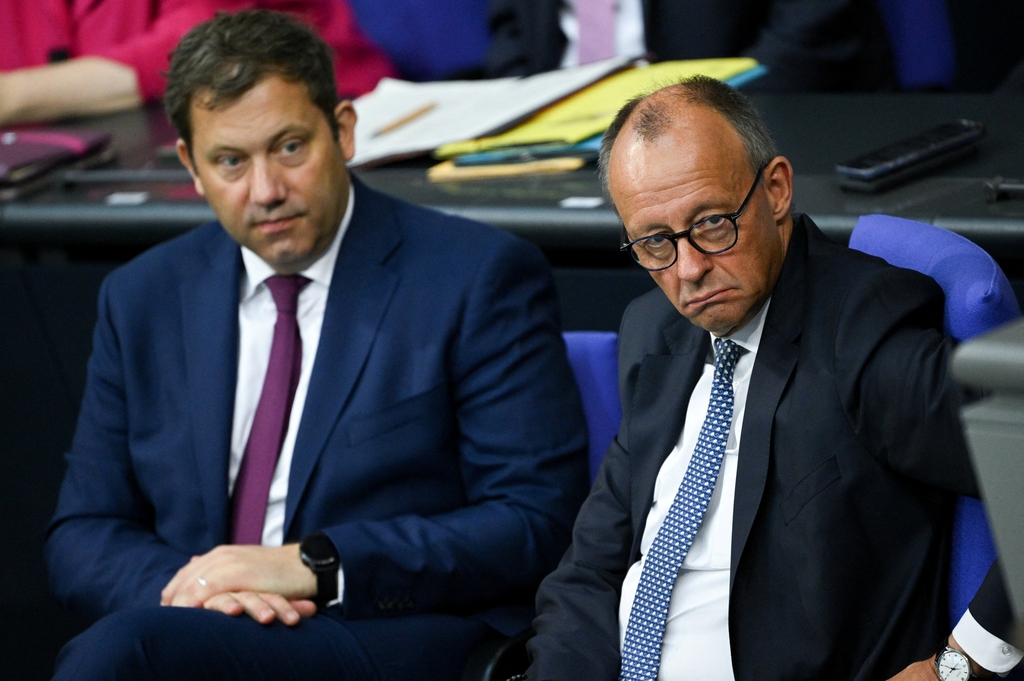 资料图:德国总理默茨和德国财政部长克林拜尔(左)东方IC