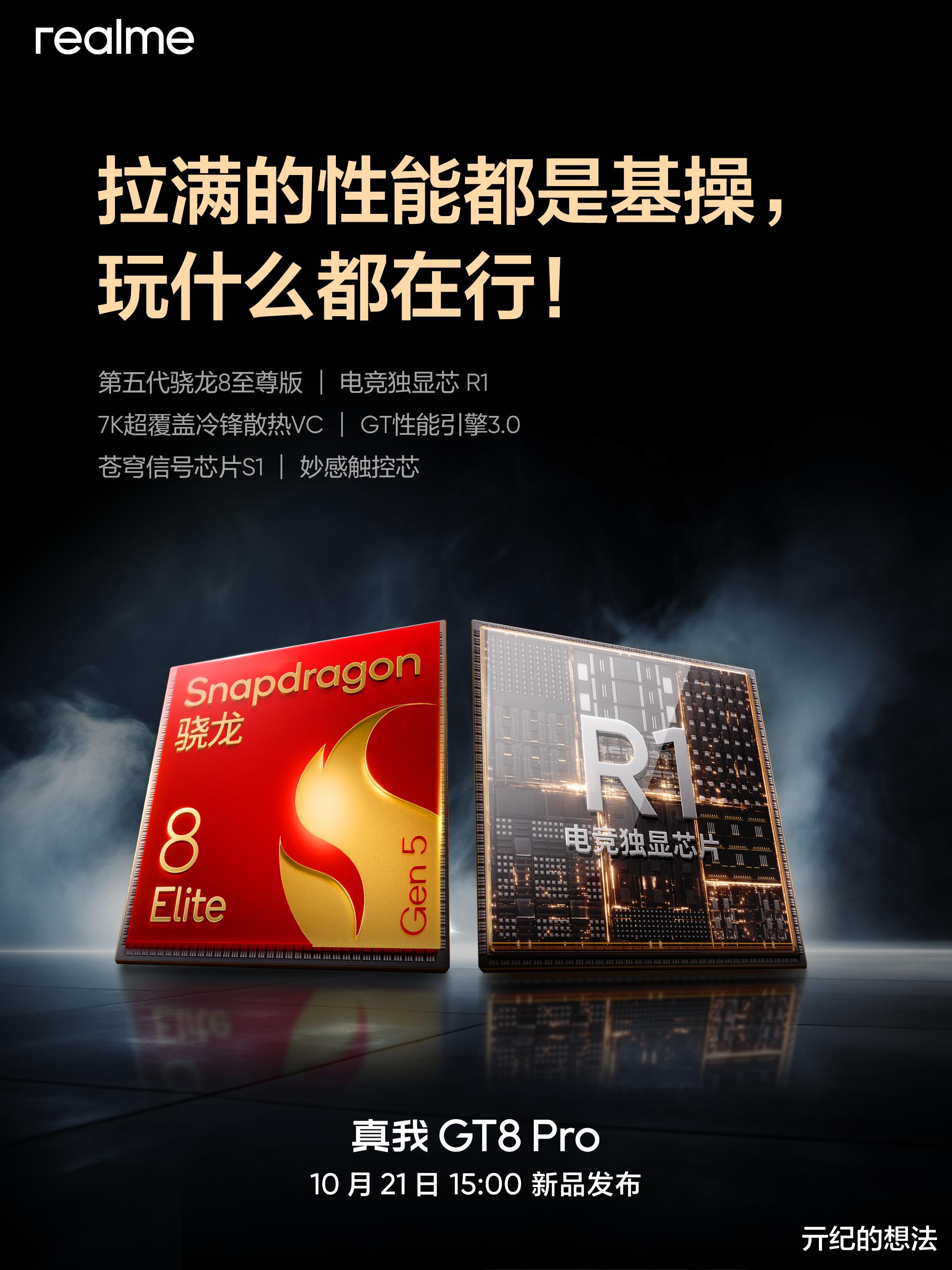 今天分享的真我GT8系列,目前发布会已经正式官宣,具体时间是10月21日15:00。其中Pro版不仅有电竞独显芯片,还有2亿潜望式长焦和理光GR联名影像,全系标配2K+144Hz苍穹直屏,真我GT8新增了5000万潜望式长焦镜头。除了疯狂堆料以外,真我GT系列在性价比方面一直都是佼佼者,感兴趣的小伙伴千万不要错过了。