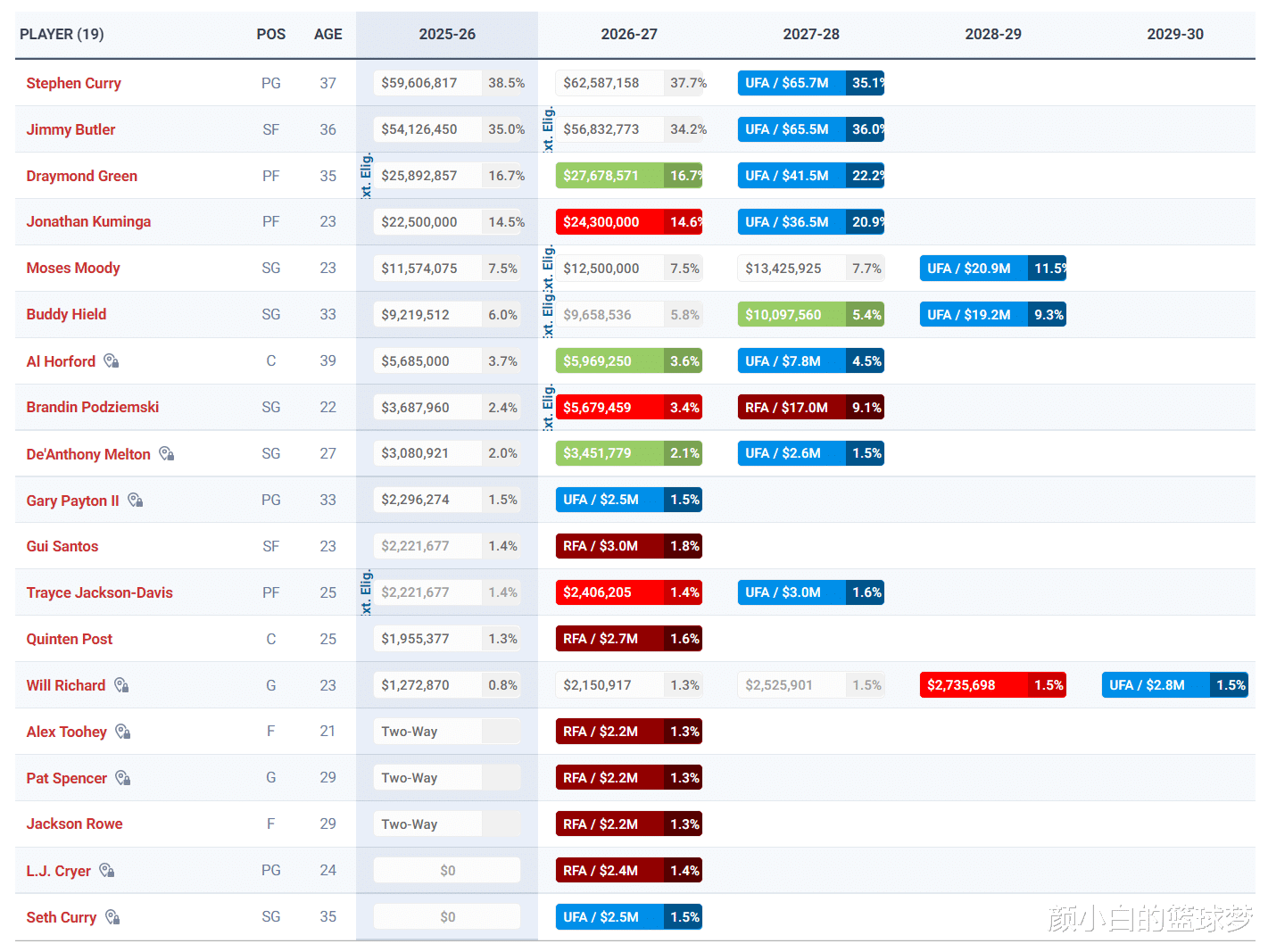 勇士在33岁及以上的球员有7人:库里、霍福德、希尔德、巴特勒、追梦、赛思、佩顿;说白了这套阵容是又矮又老,快船的阵容虽然老但他高啊,勇士这阵容实在是太矮了。