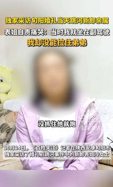 10月14日,陕西安康旬阳市一场婚礼以悲剧告终。新郎在前往酒店途中跳河,经抢救无效身亡。当天作为接亲团成员的新郎表姐冷女士回忆,从接亲到前往酒店途中,新娘因礼品、婚车安排、发言稿等婚礼琐事持续指责新郎。