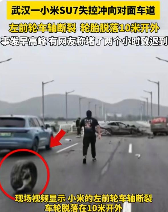 让人没想到的是,距离小米SU7成都事故才仅几天时间,武汉又有一辆小米SU7失控撞倒护栏,车轮脱落崩飞10米开外,虽然具体原因尚未明确,但接连发生的事故显然又进一步加剧了公众对小米汽车安全性的质疑。